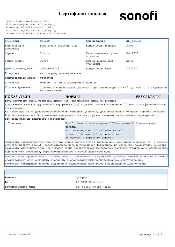 • 📒 Подробная инструкция по применению Баралгин М таблетки 500 мг 20 шт