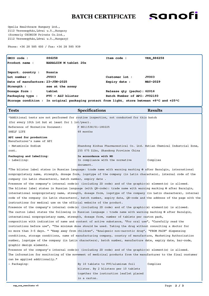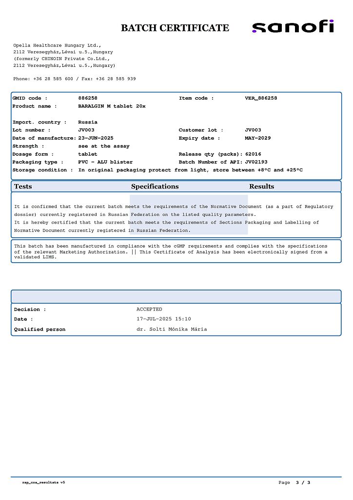 Производитель: Опелла Хелскеа Венгрия Лтд., Венгрия