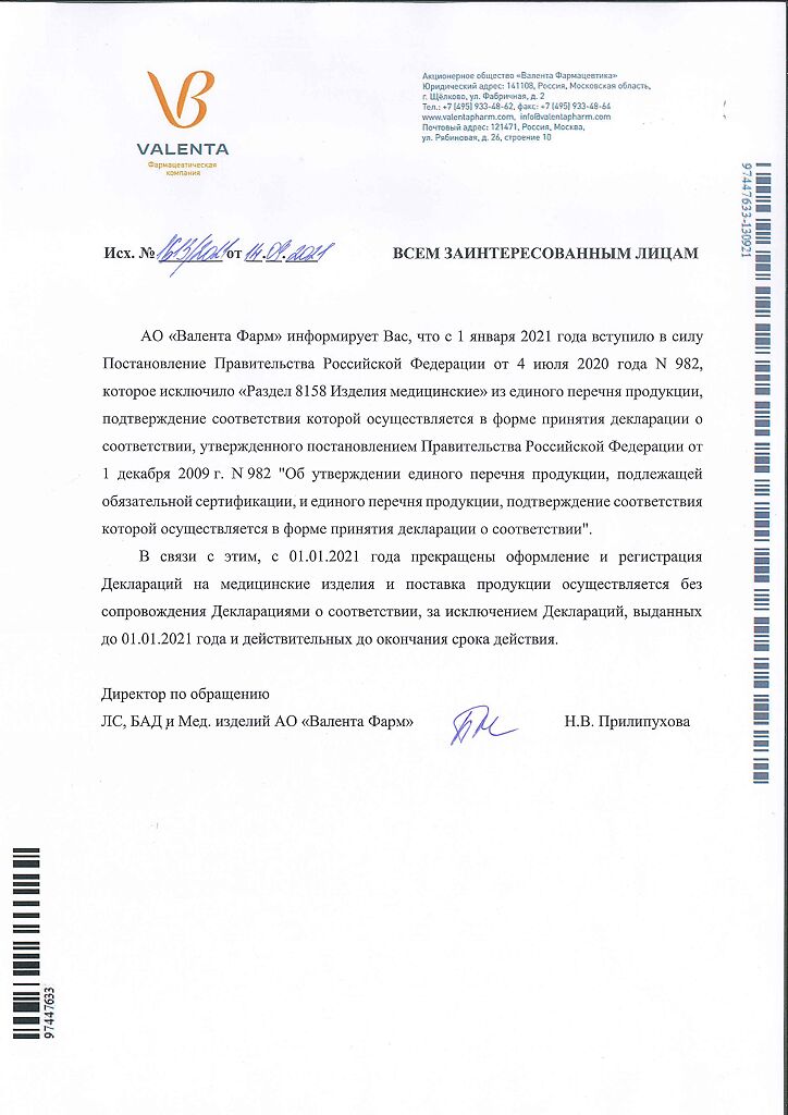 Производитель: Валента Фарм АО, Россия