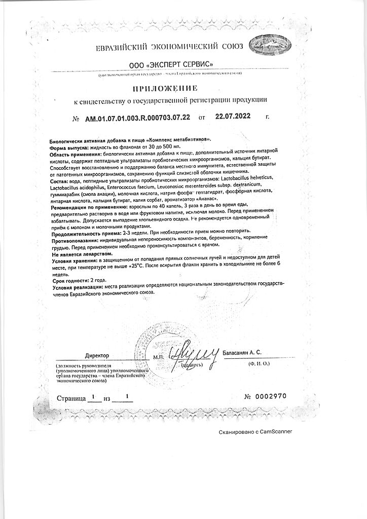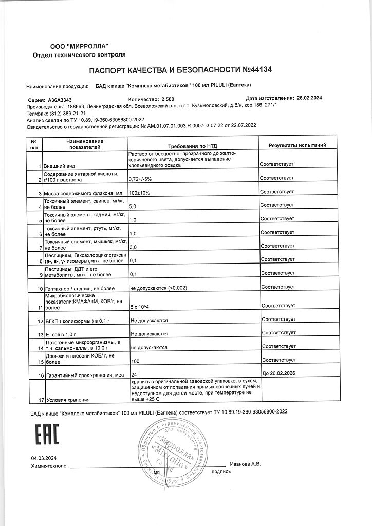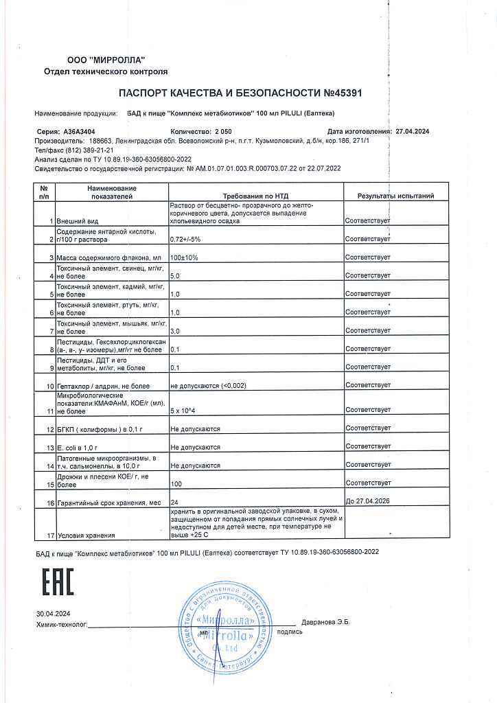 PILULI Комплекс метабиотиков раствор для приема внутрь со вкусом ананаса 100 мл 1 шт
