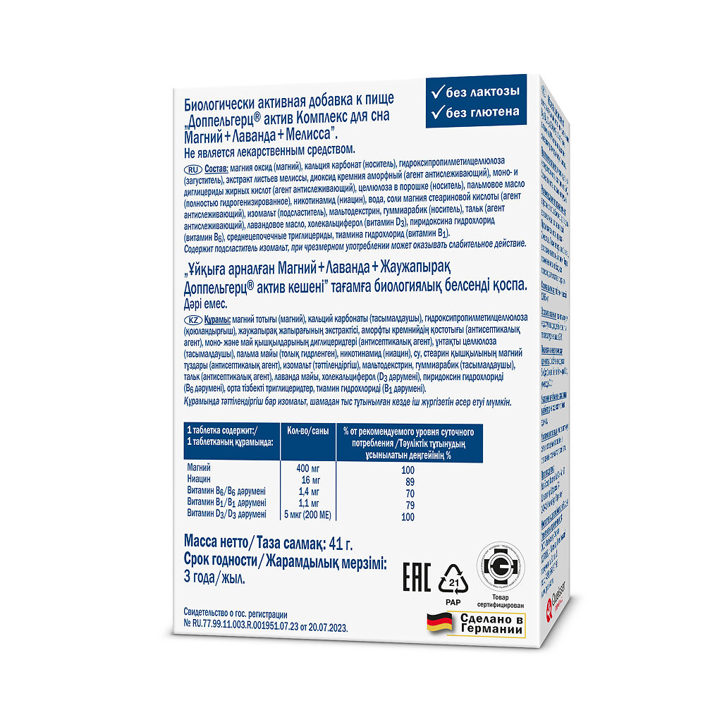 Доппельгерц Актив Комплекс сна Магний+Лаванда+Мелисса таблетки массой 1365 мг 30 шт