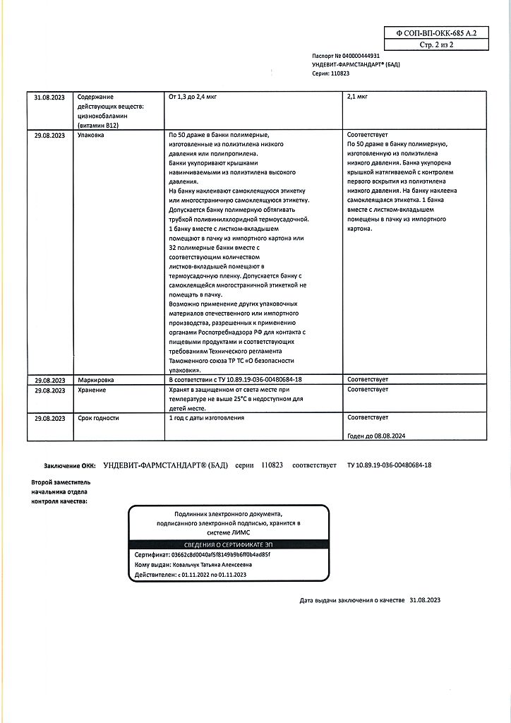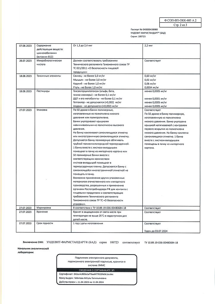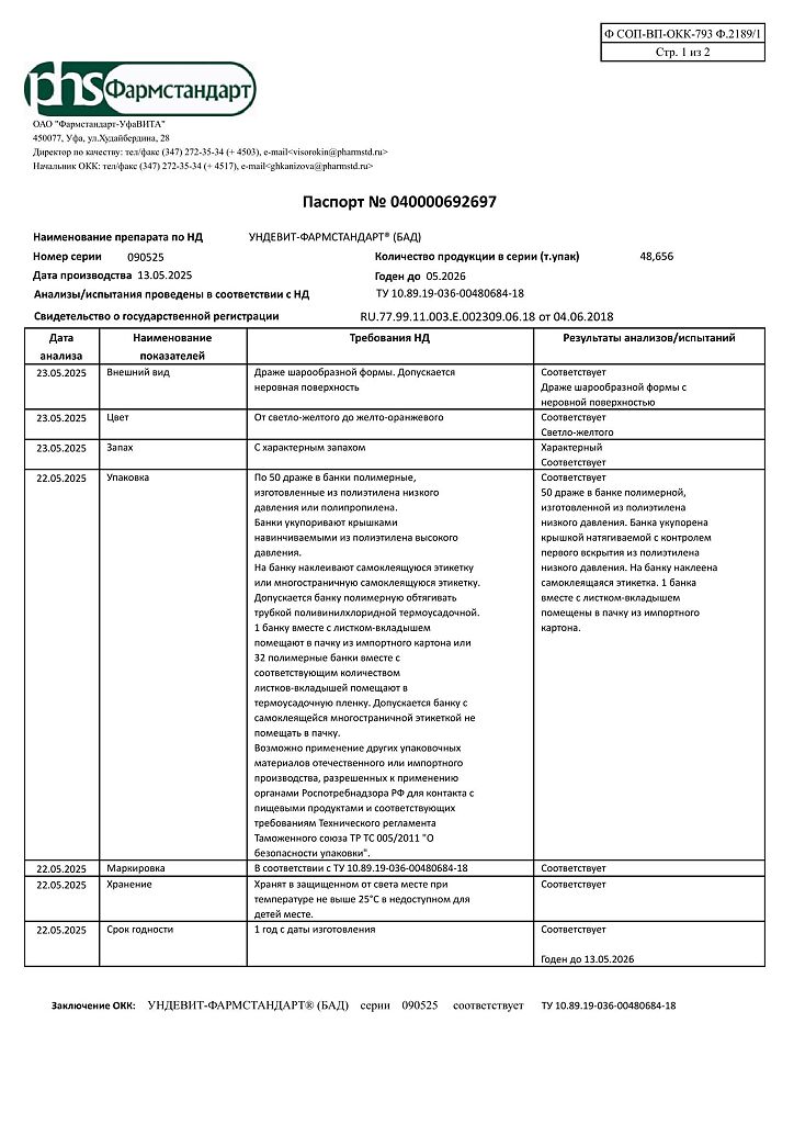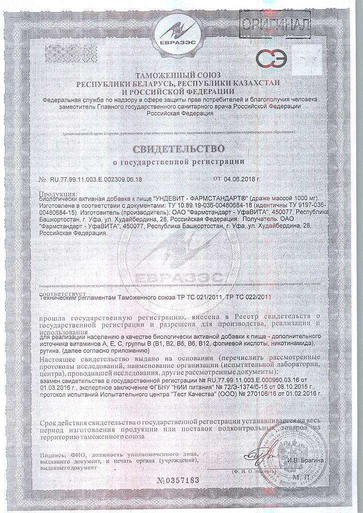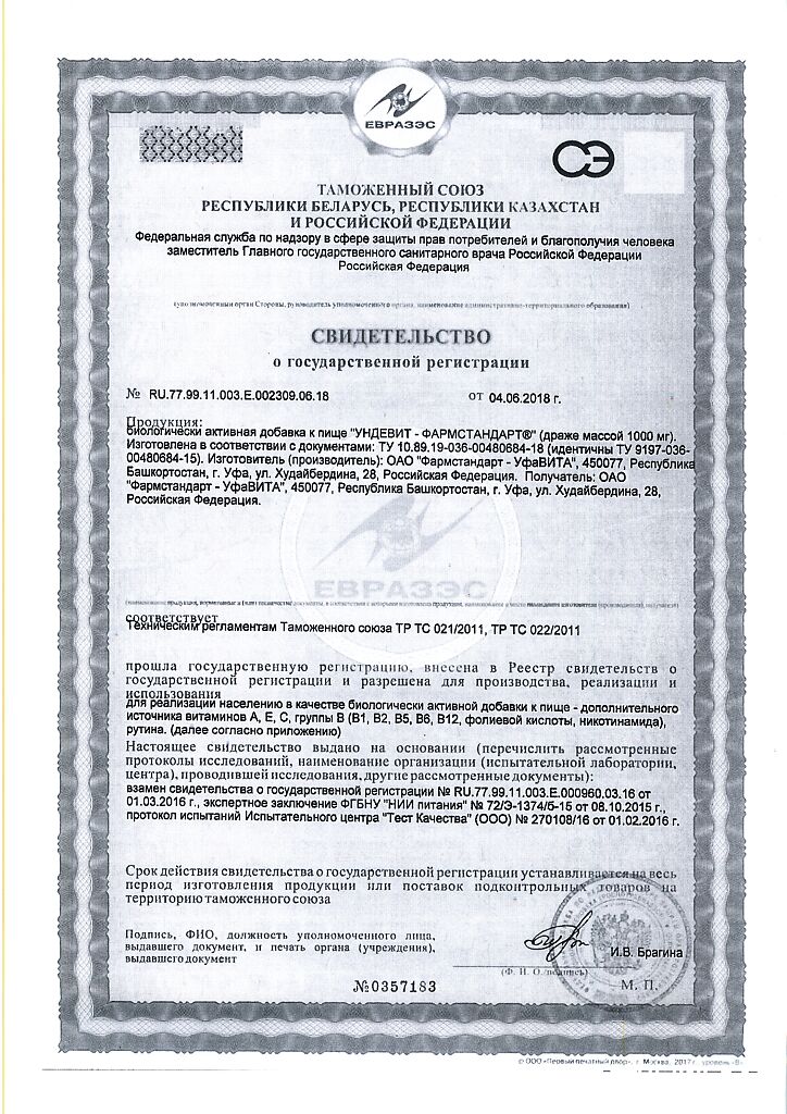 Ундевит-Фармстандарт драже массой 1000 мг БАД 50 шт