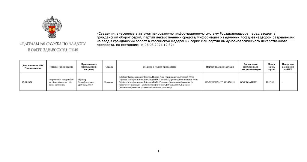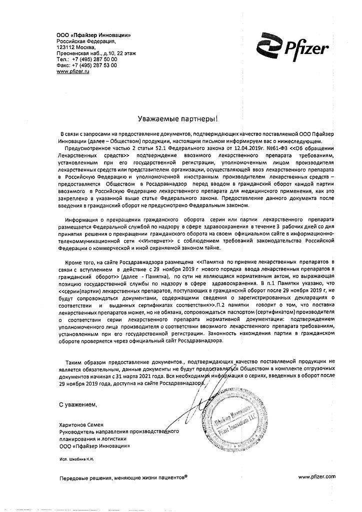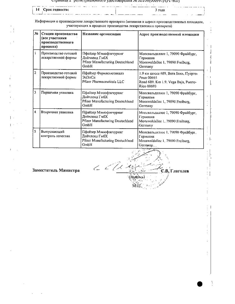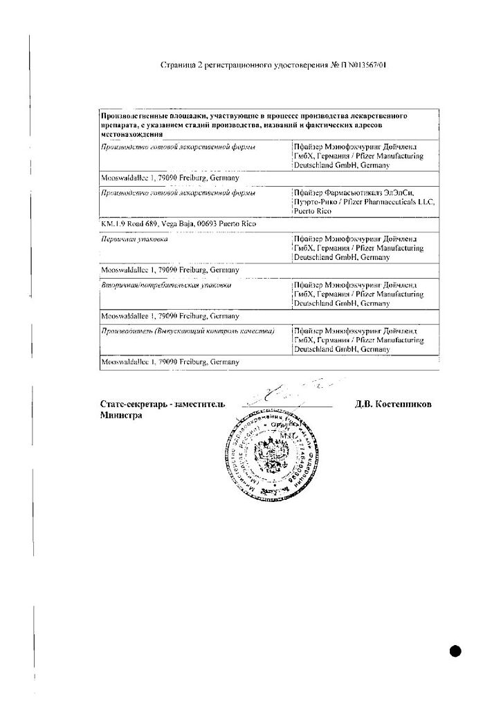Производитель: Пфайзер Фармасьютикалз ЭлЭлСи, Пуэрто-Рико
