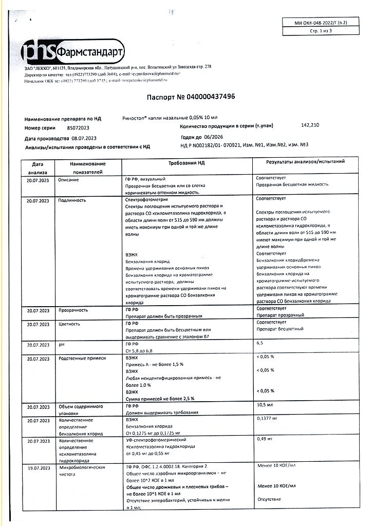Действующее вещество: Ксилометазолин