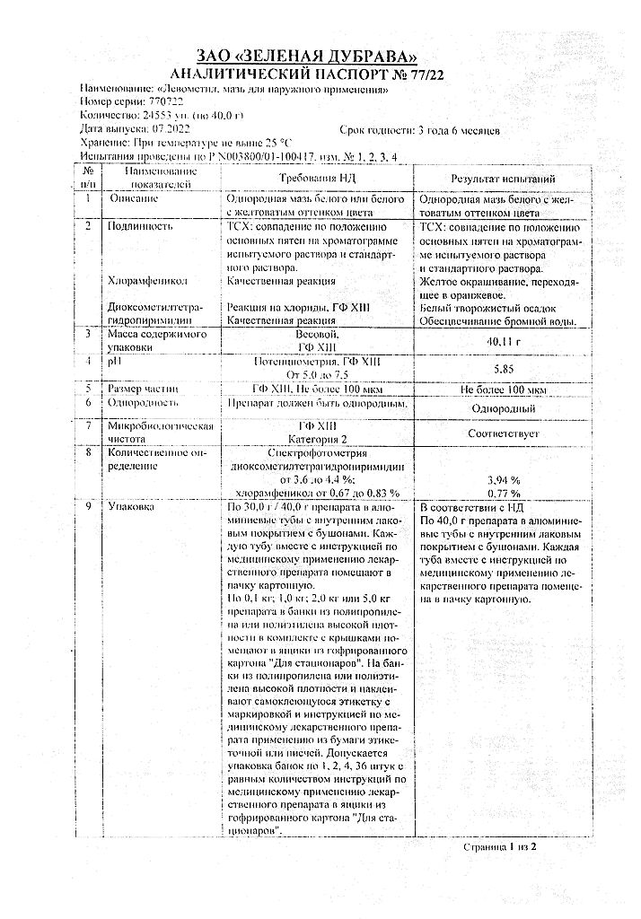 Действующее вещество: Диоксометилтетрагидропиримидин, Хлорамфеникол
