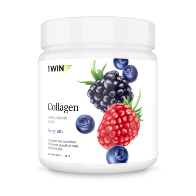 1WIN Коллаген + гиалуроновая кислота + витамин С / Collagen + hyaluronic acid + vitamin C Ягодный микс порошок банка 180 г 30 порций