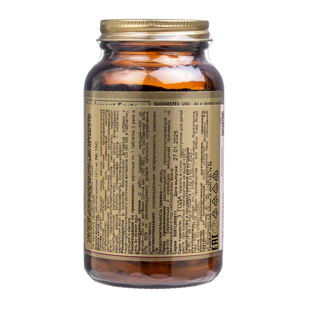 • 📒 Подробная инструкция по применению Solgar Кальций-Магний с витамином D3 / Calcium Magnesium with Vitamin D3 Tablets таблетки массой 1571 мг 150 шт
