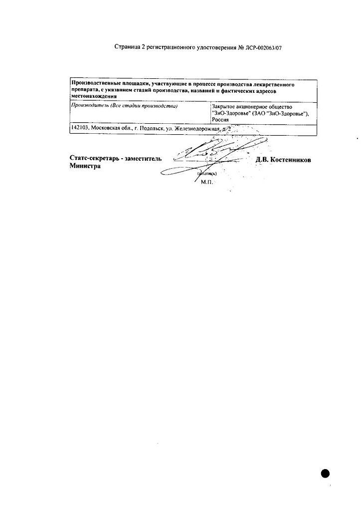Производитель: ЗиО-Здоровье ЗАО, Россия