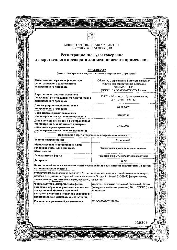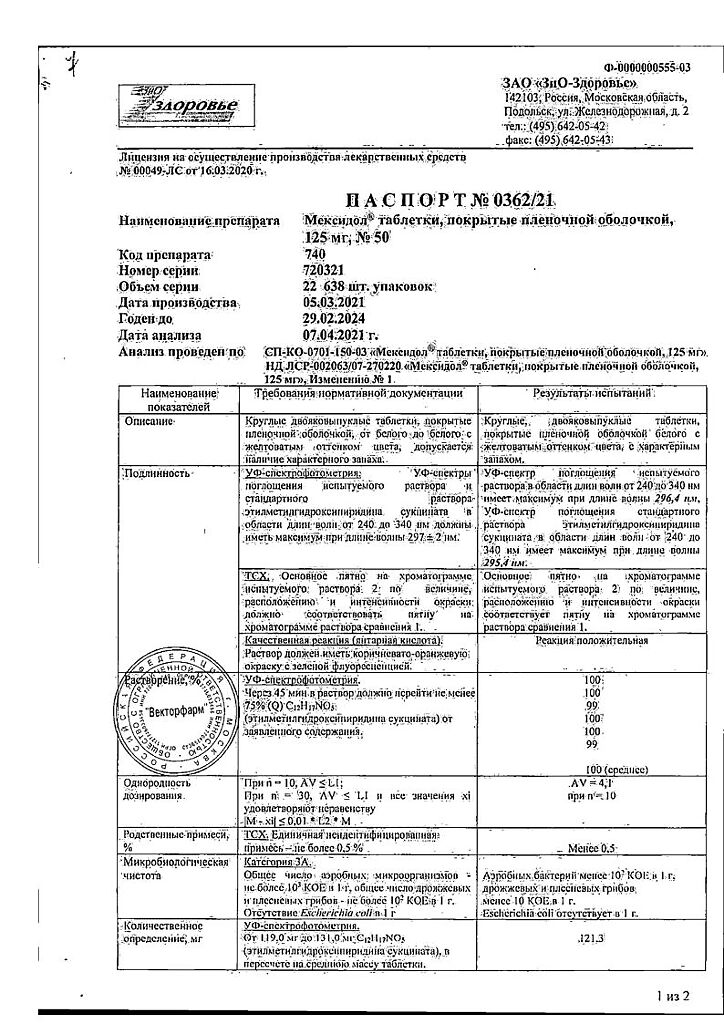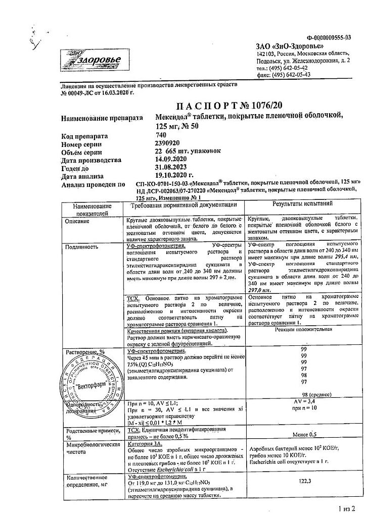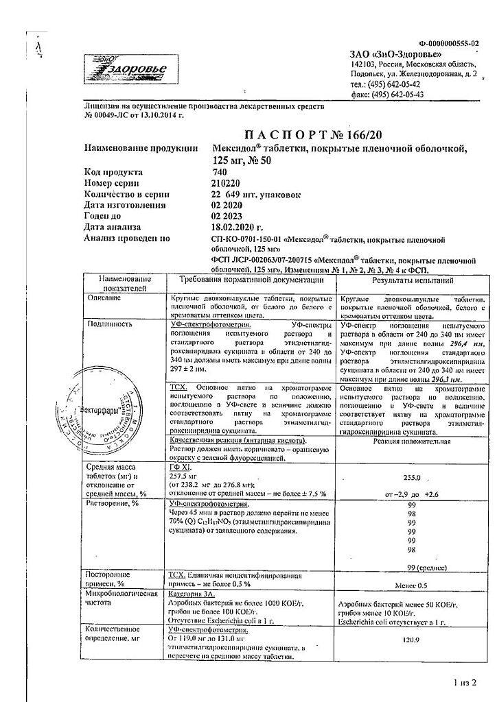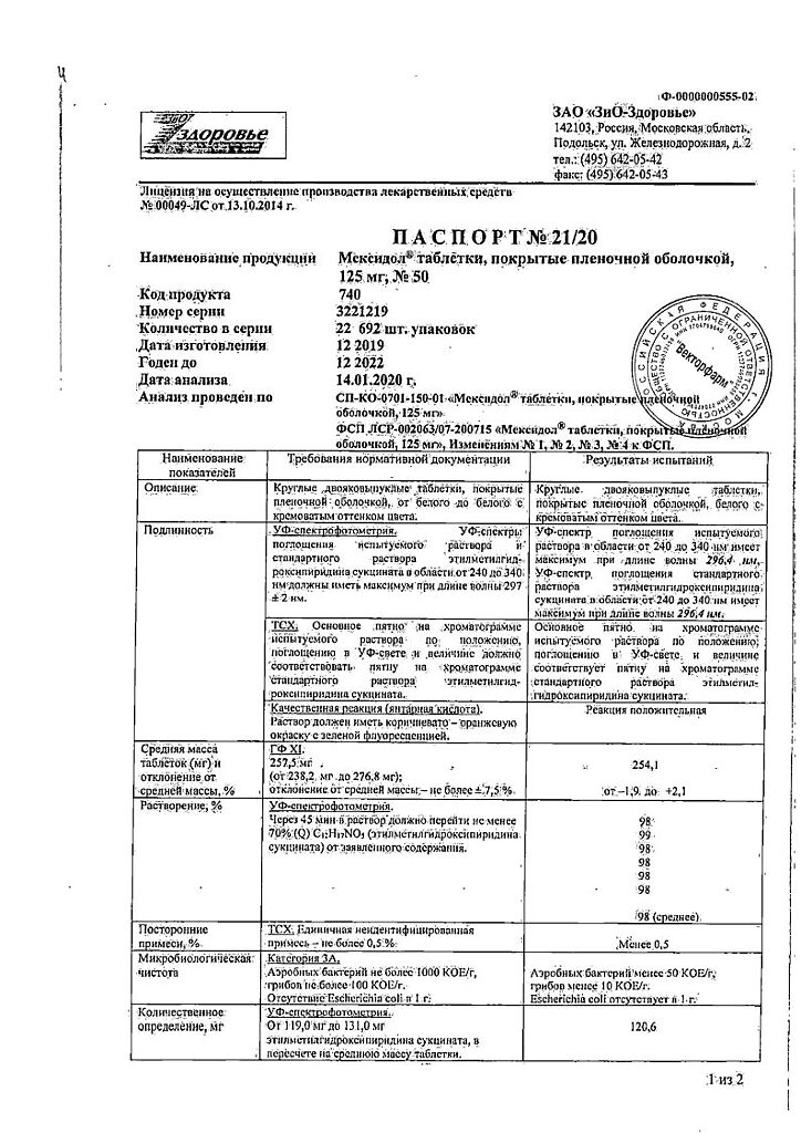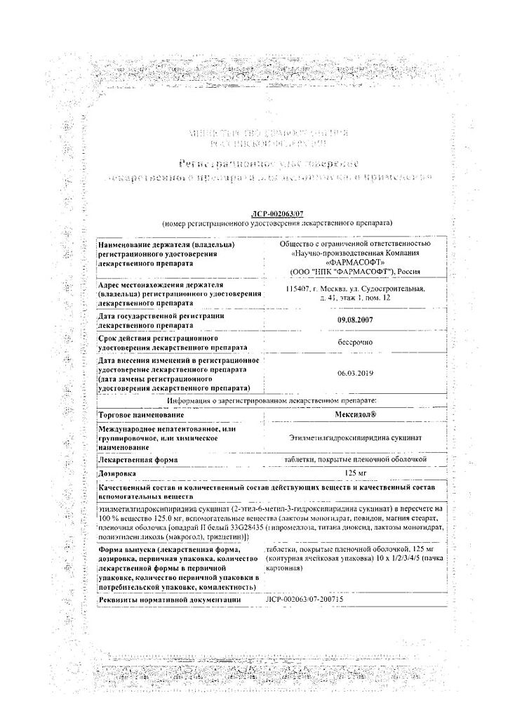 Действующее вещество: Этилметилгидроксипиридина сукцинат