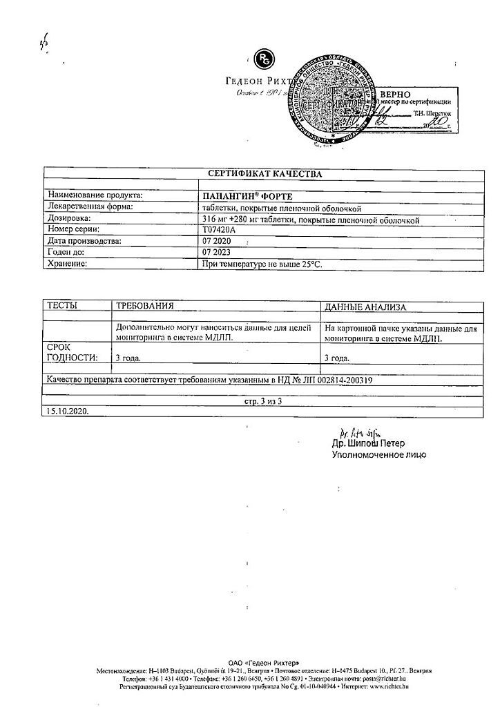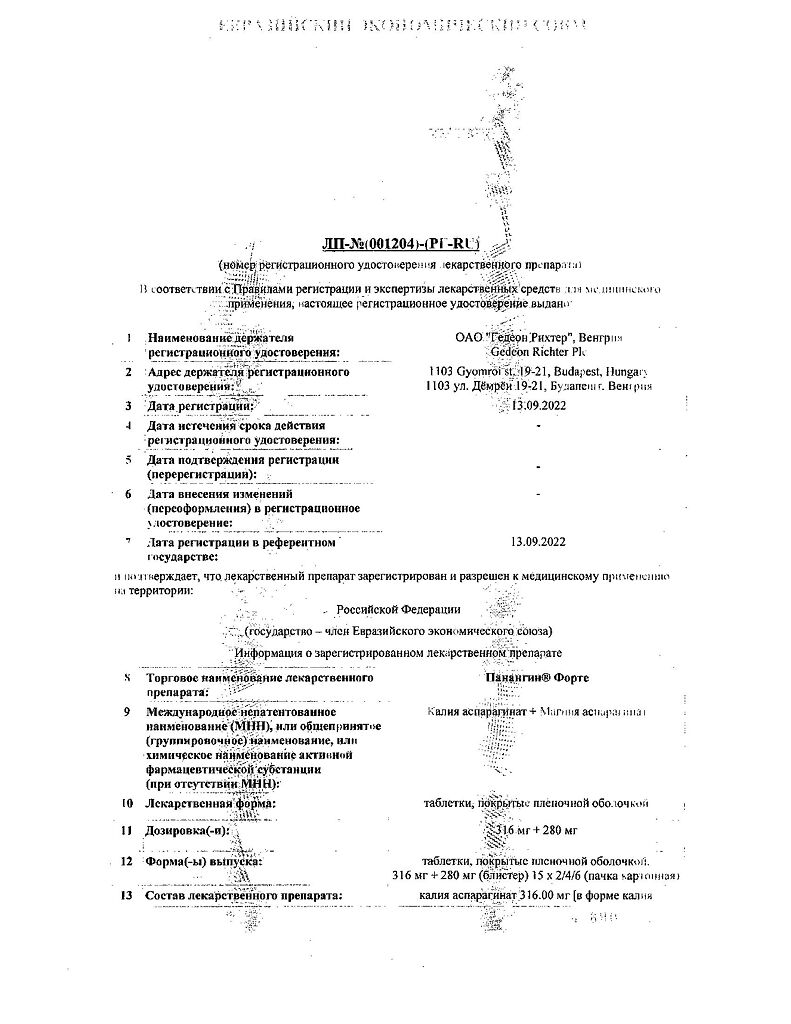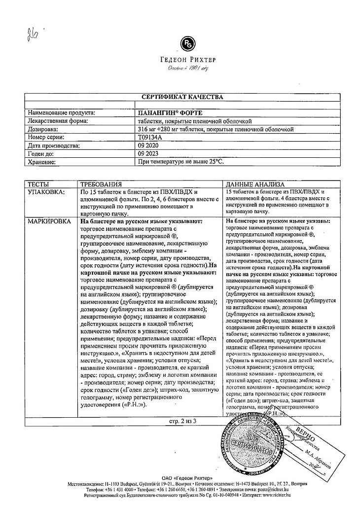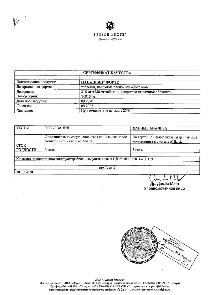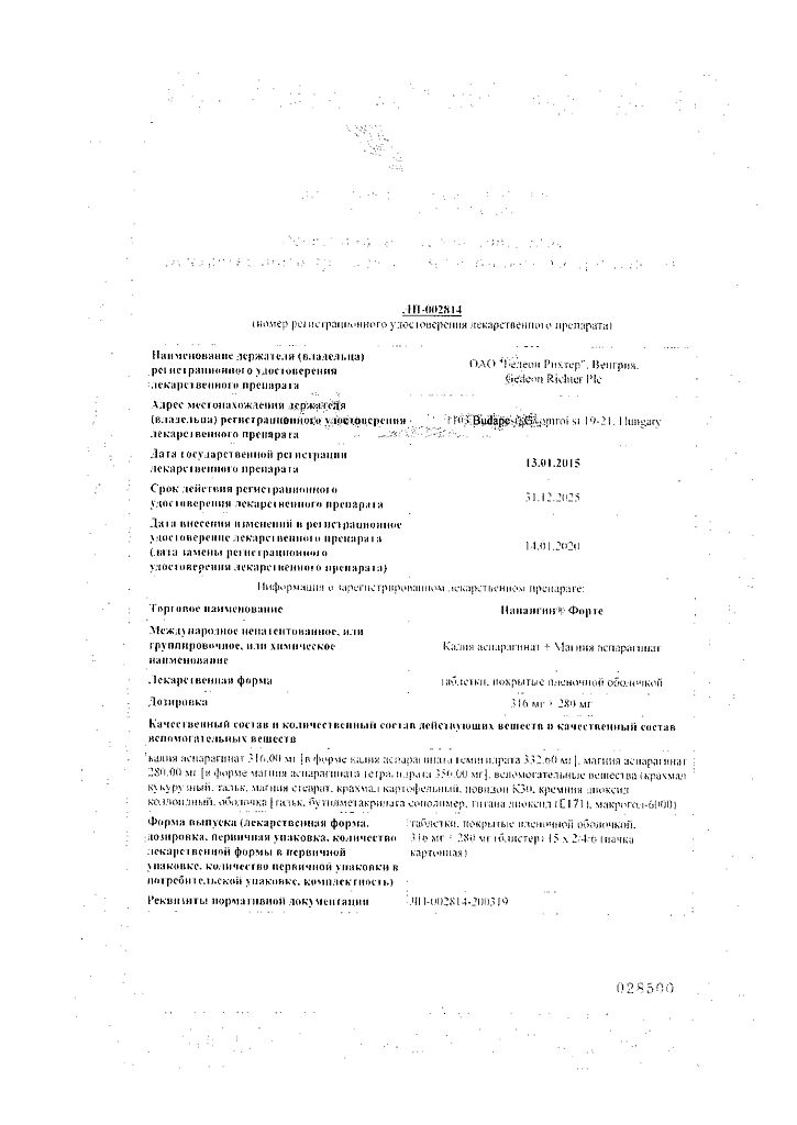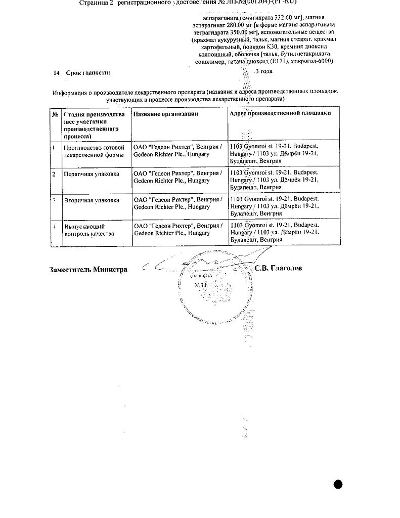 Действующее вещество: Калия аспарагинат, Магния аспарагинат