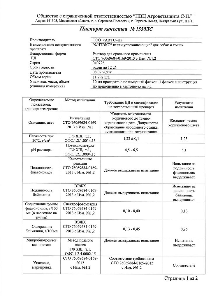Наша собака бывшеприютская. Перепробывали много разных успокоительных. Фитекс лучший! Только его и берём.Нет побочек(но это всё индивидуально)Хотя от обычной валерианки был обратный эффект(в препарате есть валерианка)Нет аллергии.Снйчас в 50мл.очень не просто найти, а здесь можно поймать момент) Цен ... а вообще классная! 1капля на 1кг животного, я добавляю в еду(по инструксии до еды и лучше втерать)у нас 45капель за приём. Ветеринар сказал можно давать с едой. Ещё