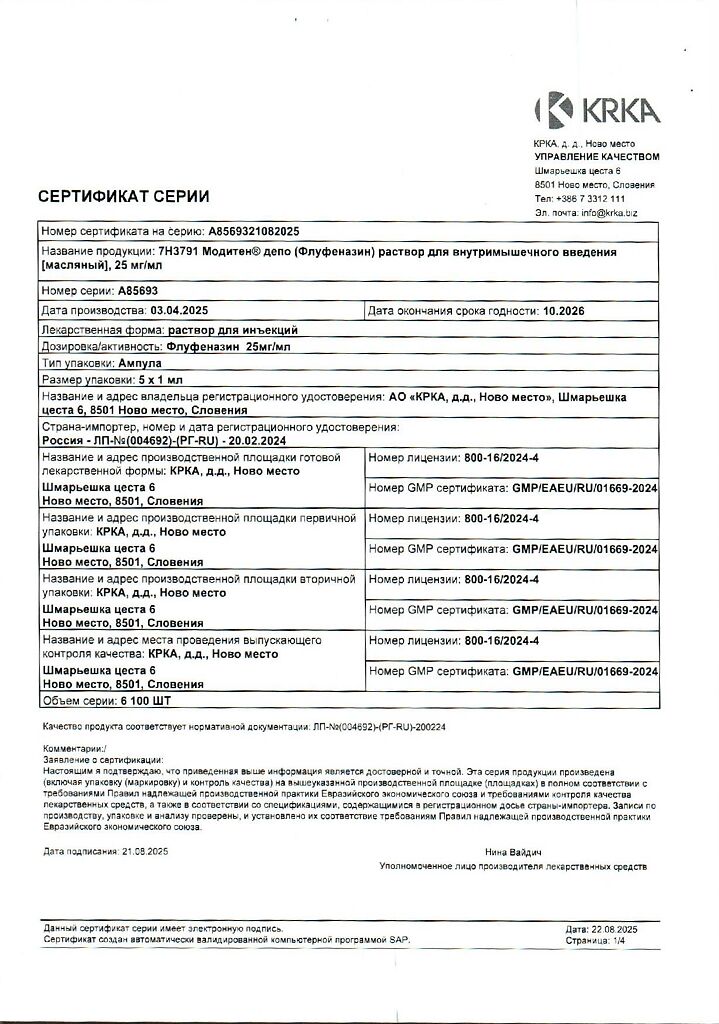 • Производителем Модитен депо является - Бристол-Майерс Сквибб