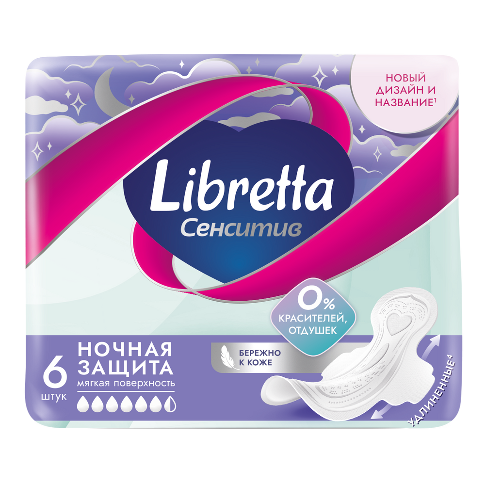 Libretta Прокладки гигиенические Сенсетив Ночные+ мягкая поверхность 6 шт