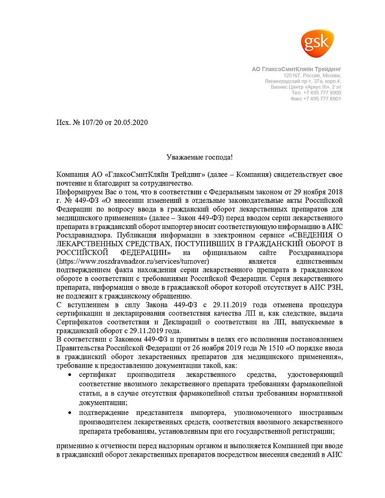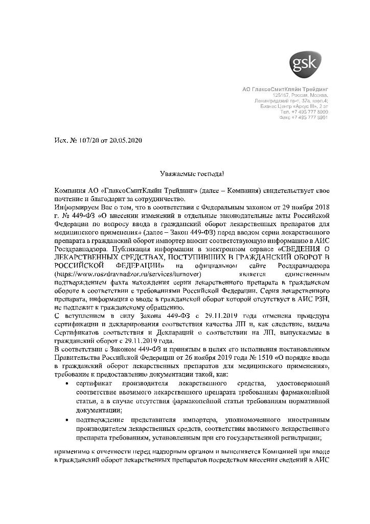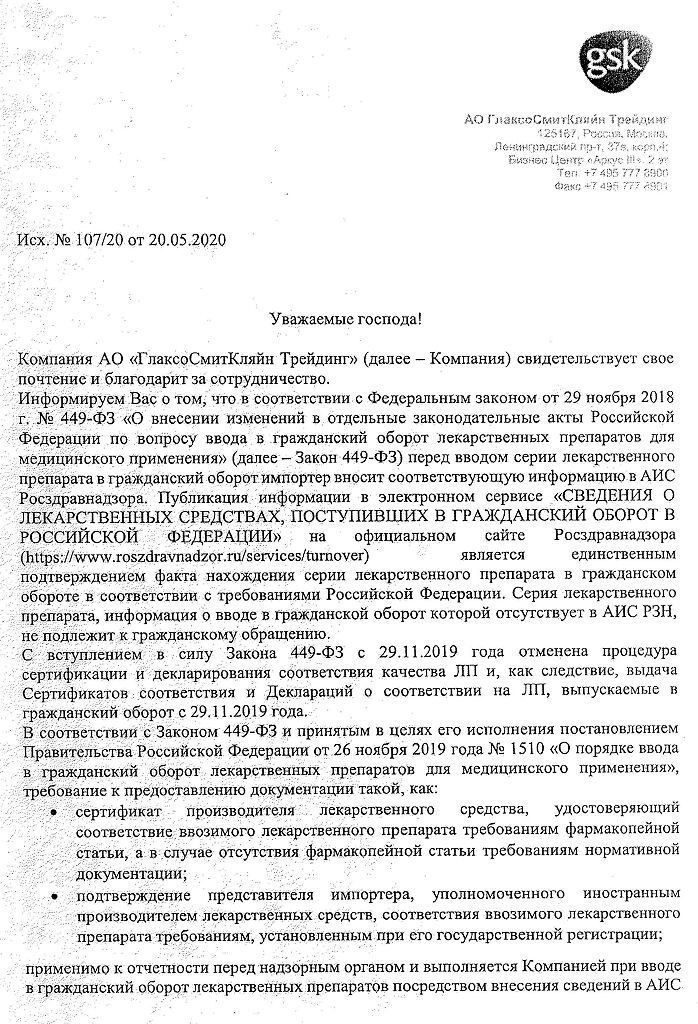 Производитель: ГлаксоСмитКляйн Фармасьютикалз С.А., Польша