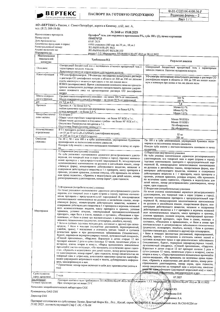 Ортофен гель для наружного применения 5 % 100 г 1 шт: 8 отзывов покупателей и фармацевтов