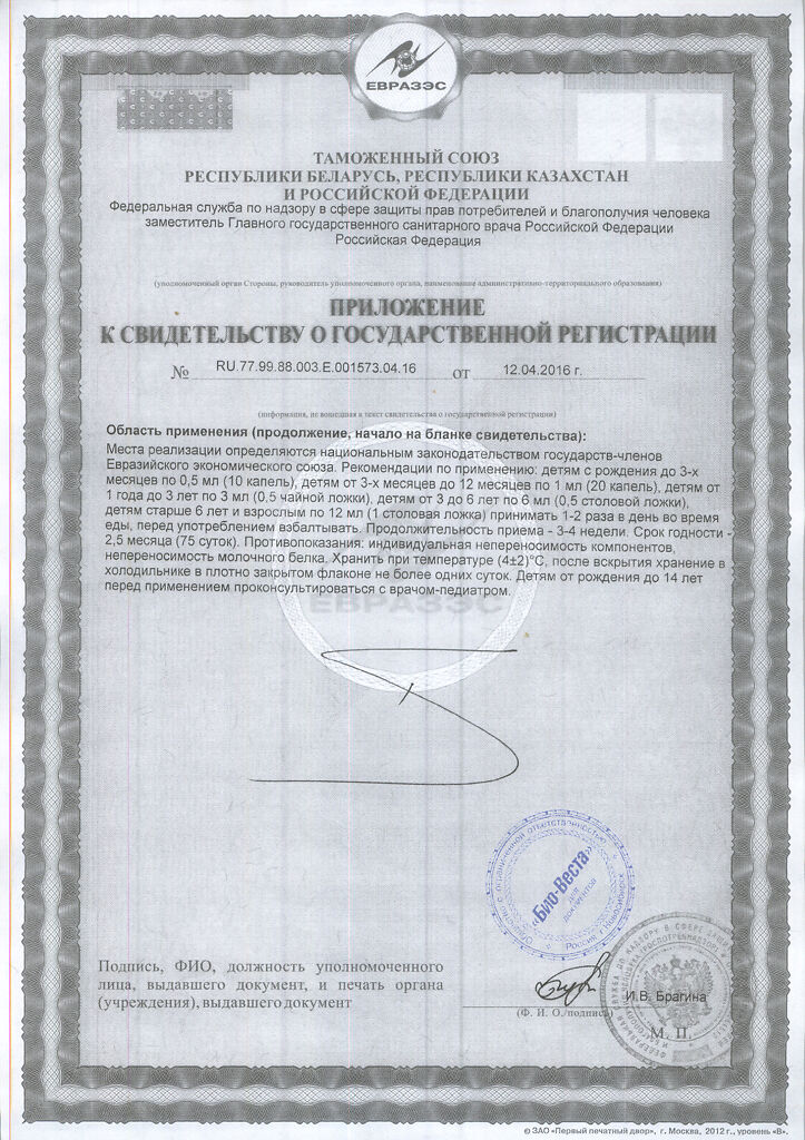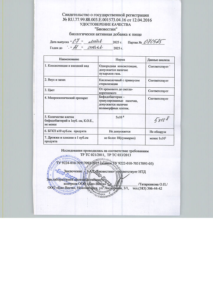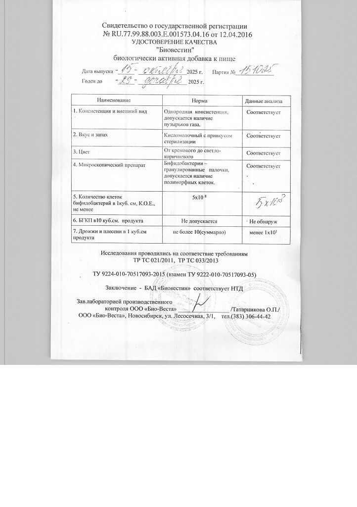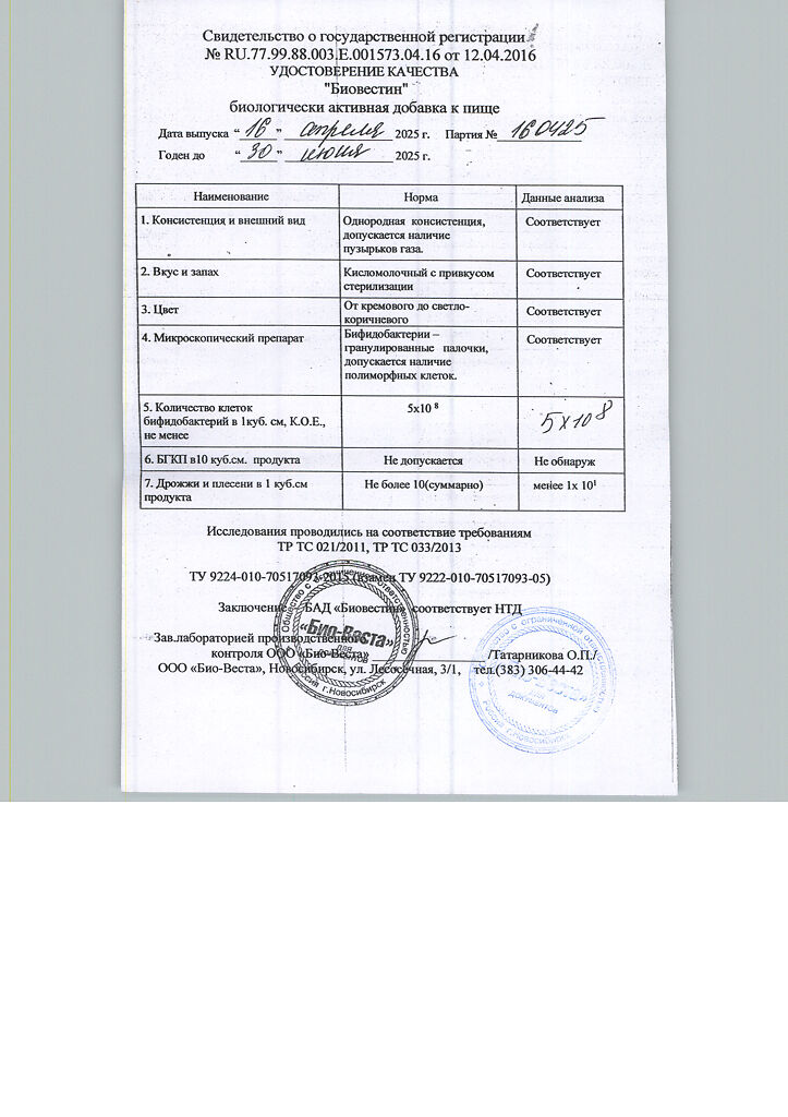 Хорошее средство от дисбактериоза и расстройств пищеварения, эффективно и при применении антибиотиков. Хотелось бы отметить, в ответ на отрицательные отзывы, что данный препарат содержит молочные белки, как питательная среда для содержащихся в препарате живых бактерий, поэтом у детей с нарушением ус ... воения молочных белков могут быть аллергические реакции. Как, впрочем, и у взрослых с аналогичной проблемой - может быть "несварение". Остальным рекомендую данный препарат, как лучший из всех аналогов на нашем рынке, так как содержит живые бактерии, а не полуживые бактерии или питательные среды для них как в других препаратах. А еще, сама столкнулась с этим, надо читать внимательно инструкцию: так как данный препарат содержит лактобактерии, то он больше подходит людям со склонностью к жидкому стулу (то есть препарат обладает еще и "закрепляющим" действием). Тем же кто склонен к запорам рекомендовано рекомендовано вместо "биовестин-лакто" применять "биовестин" не содержащий лактобактерий. И еще очень важный момент: так как бактерии живые, то их надо обязательно хранить в холодильнике и употребить до окончания срока годности. Так же при покупке проверяйте условия хранения в аптеке и срок годности. Ещё