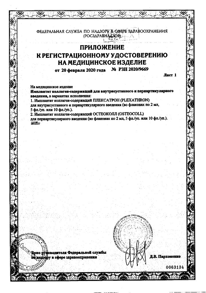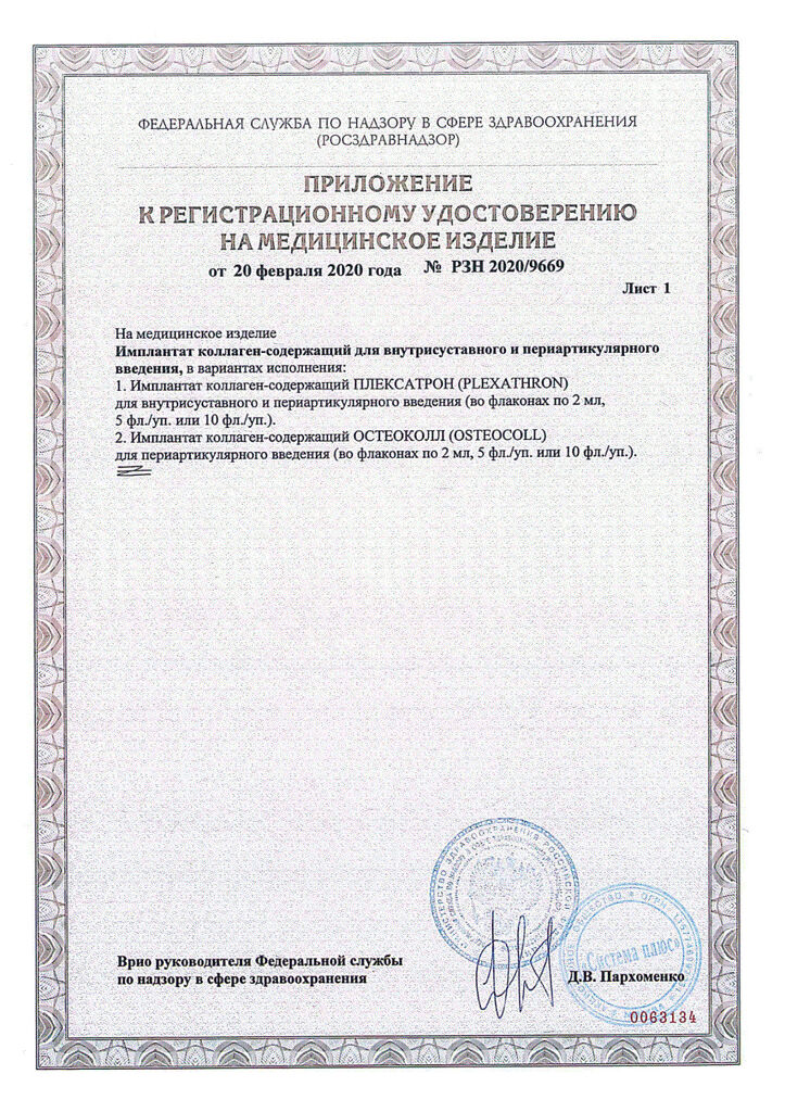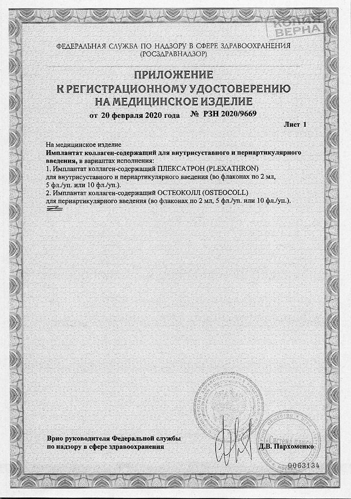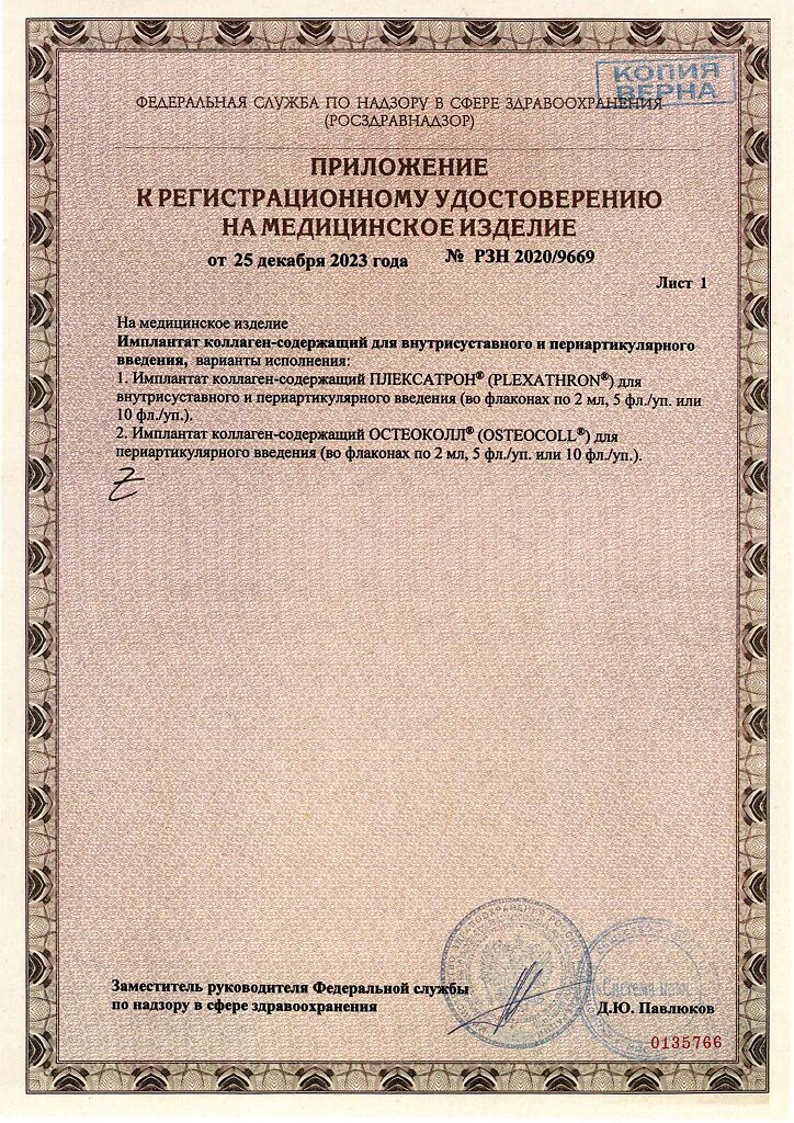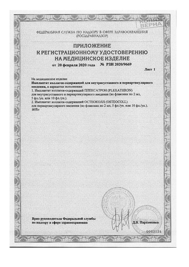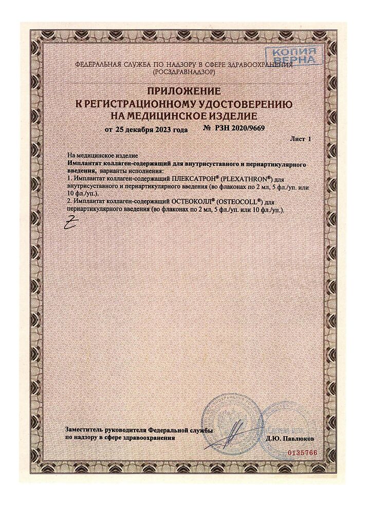 Плексатрон имплантат коллаген для в/сустав и периартил введ 100 мкг/2,0 мл фл 5 шт