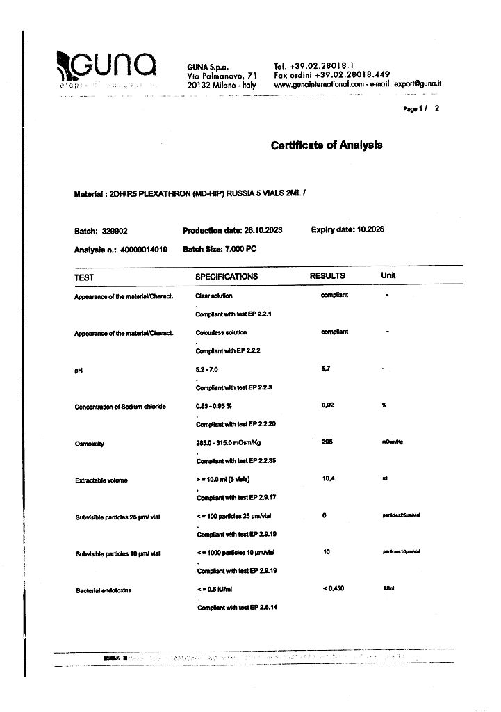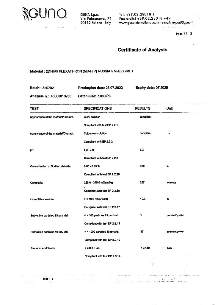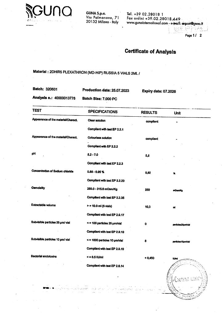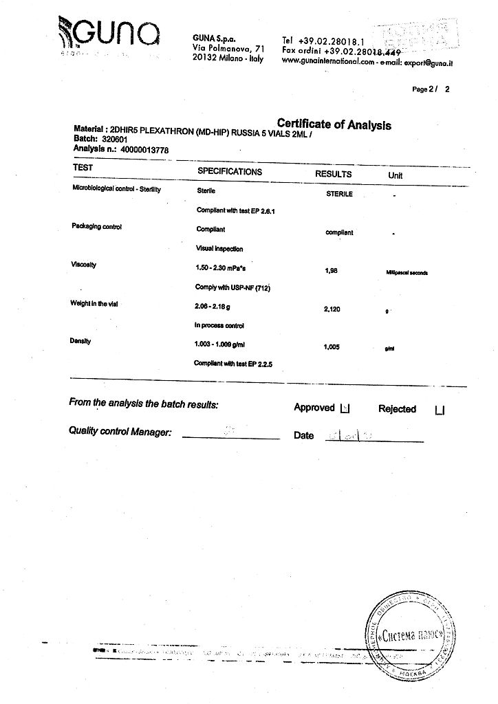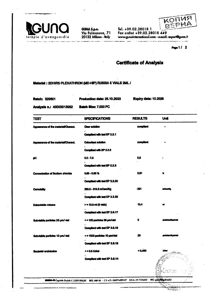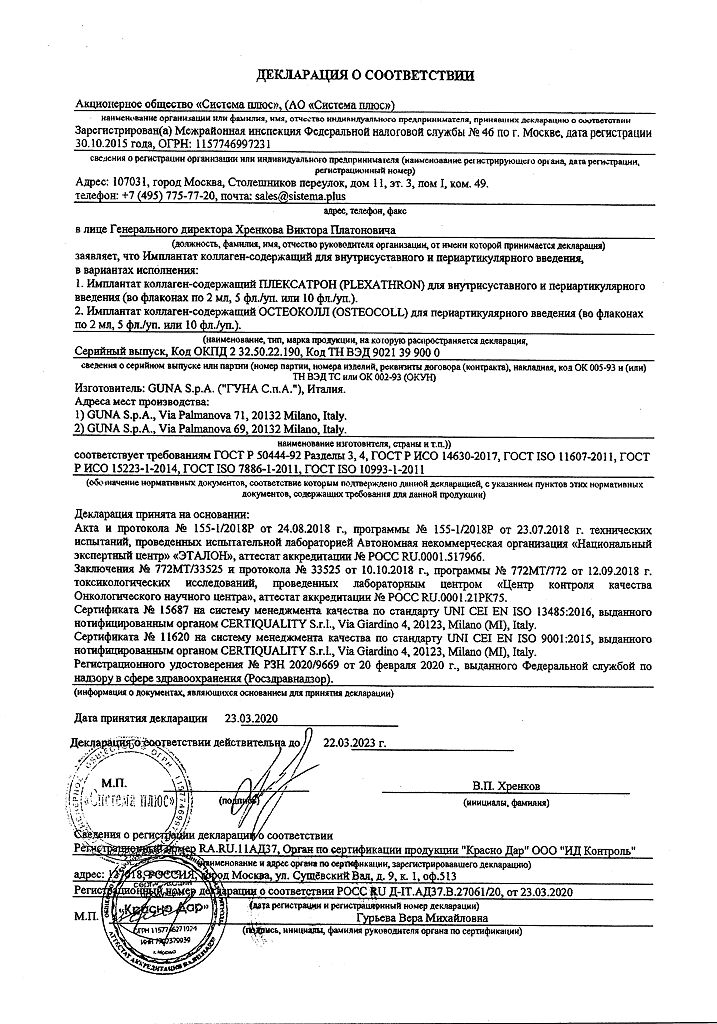 Плексатрон имплантат коллаген для в/сустав и периартил введ 100 мкг/2,0 мл фл 5 шт