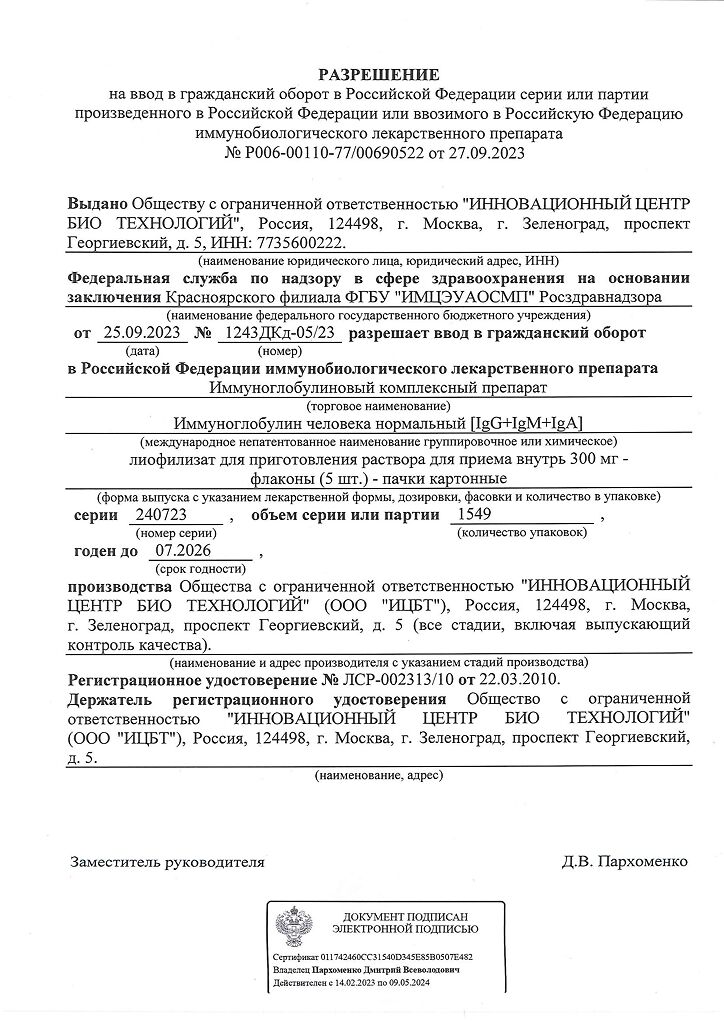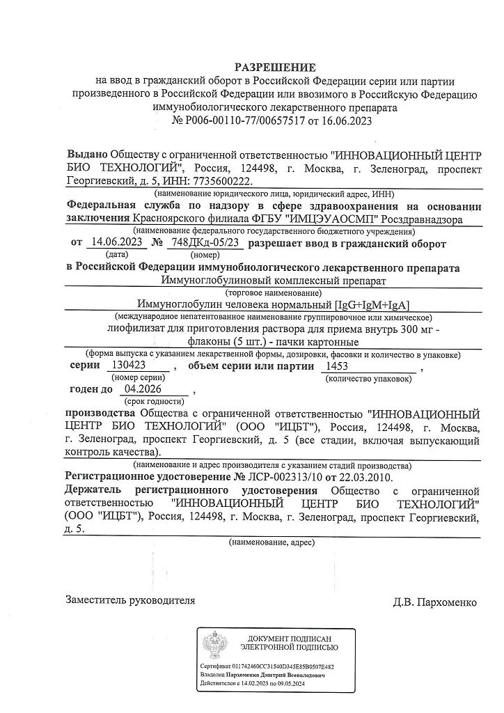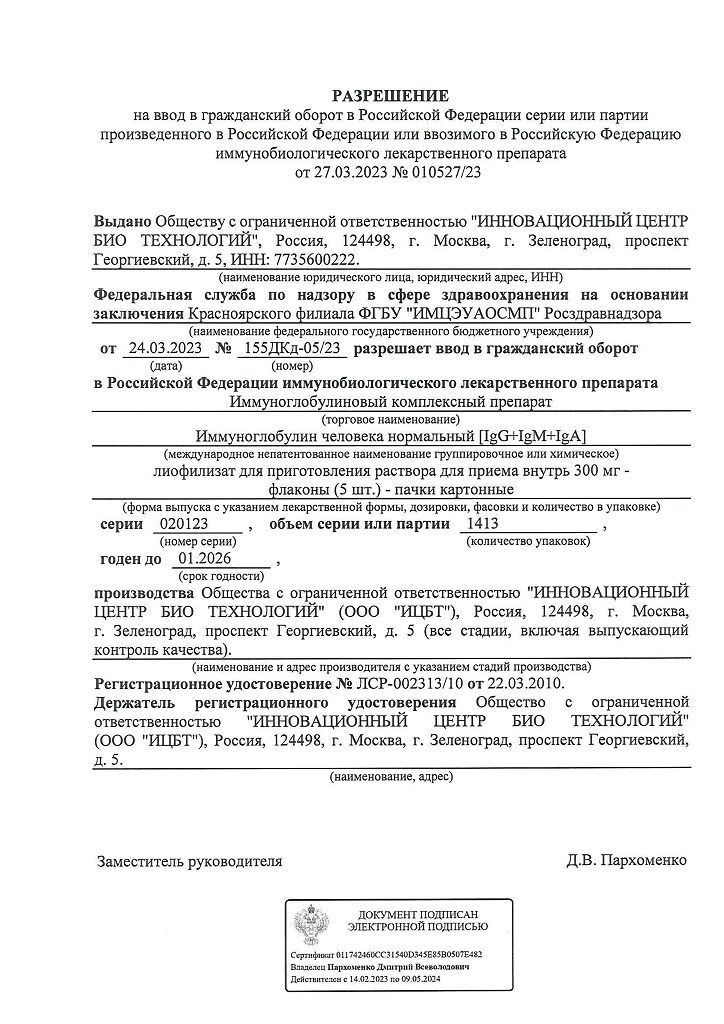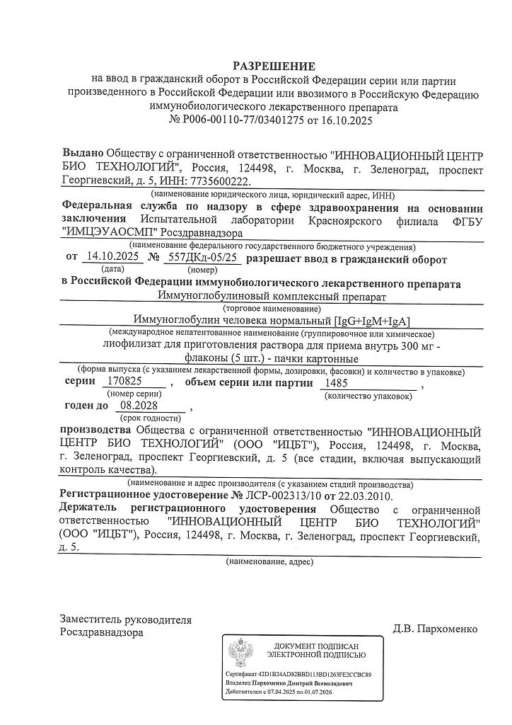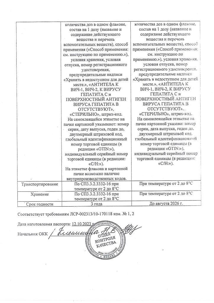 Производитель: СиЭсЭл Беринг АГ, Швейцария