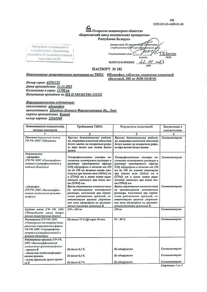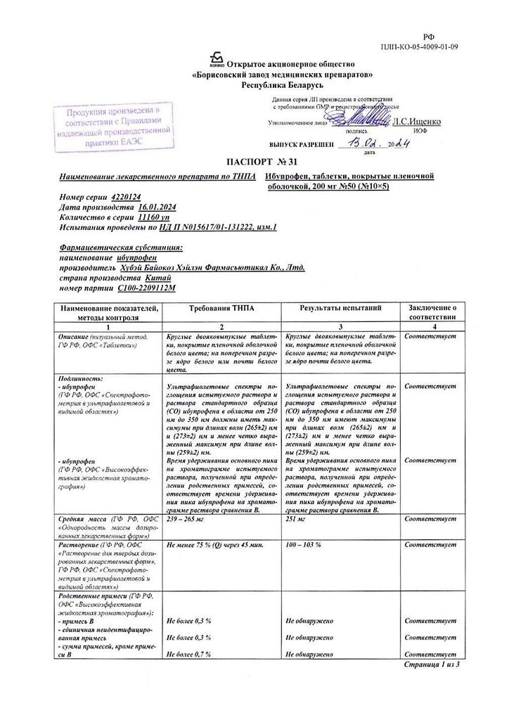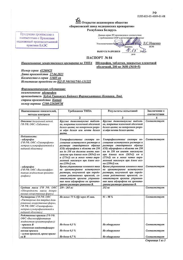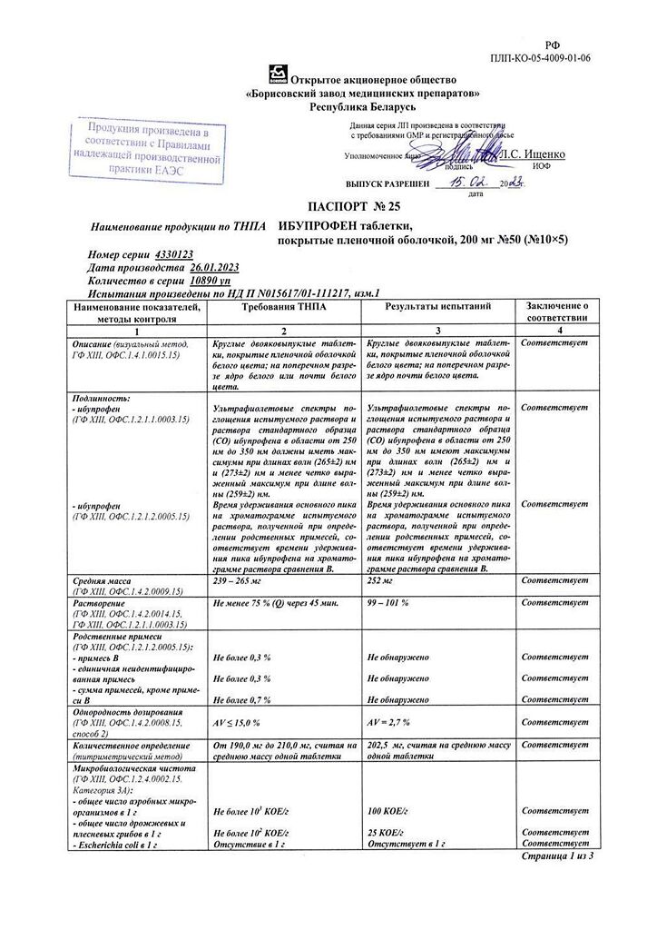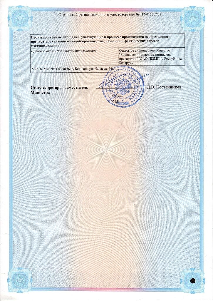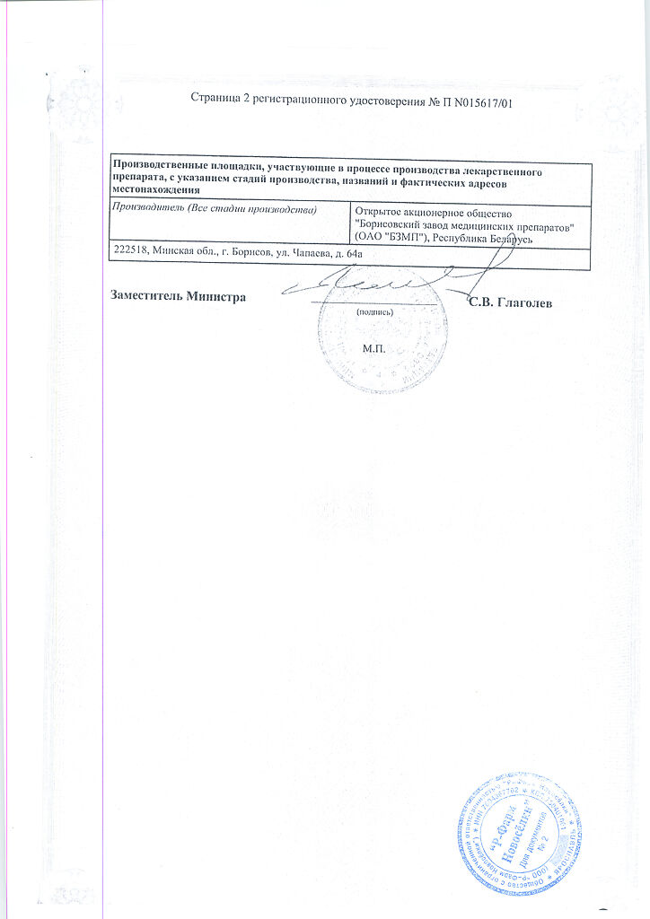 Производитель: Борисовский завод медицинских препаратов, Беларусь