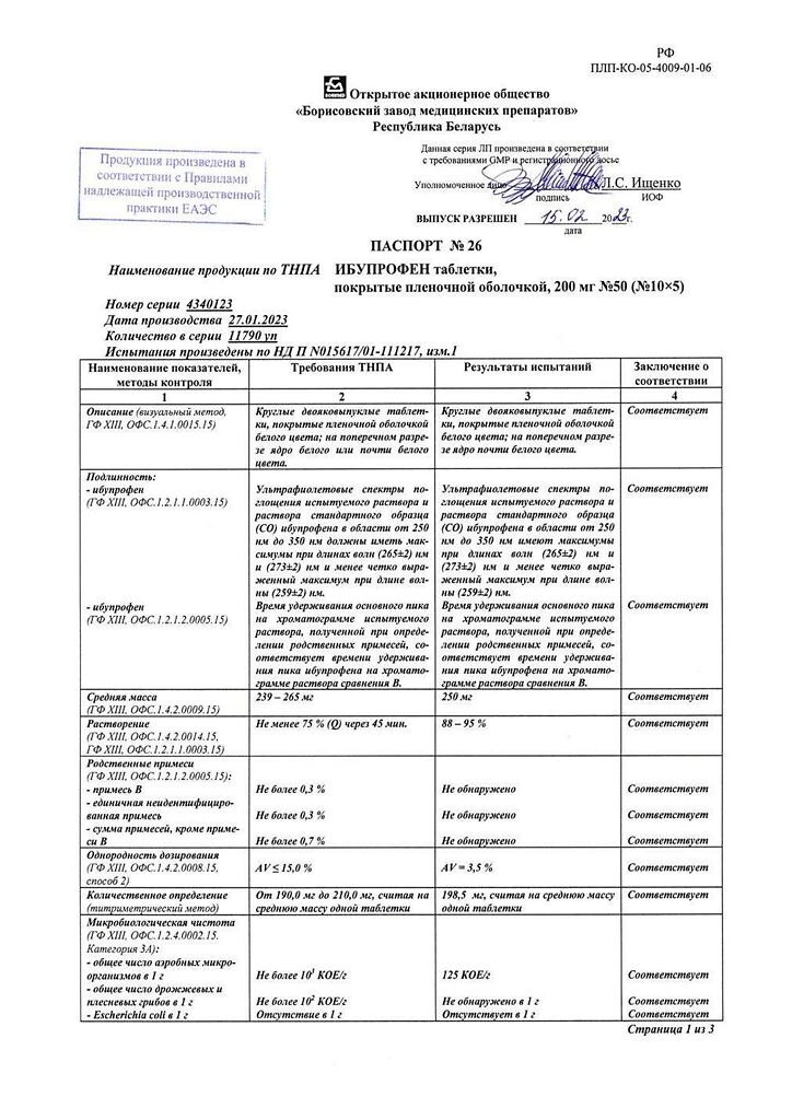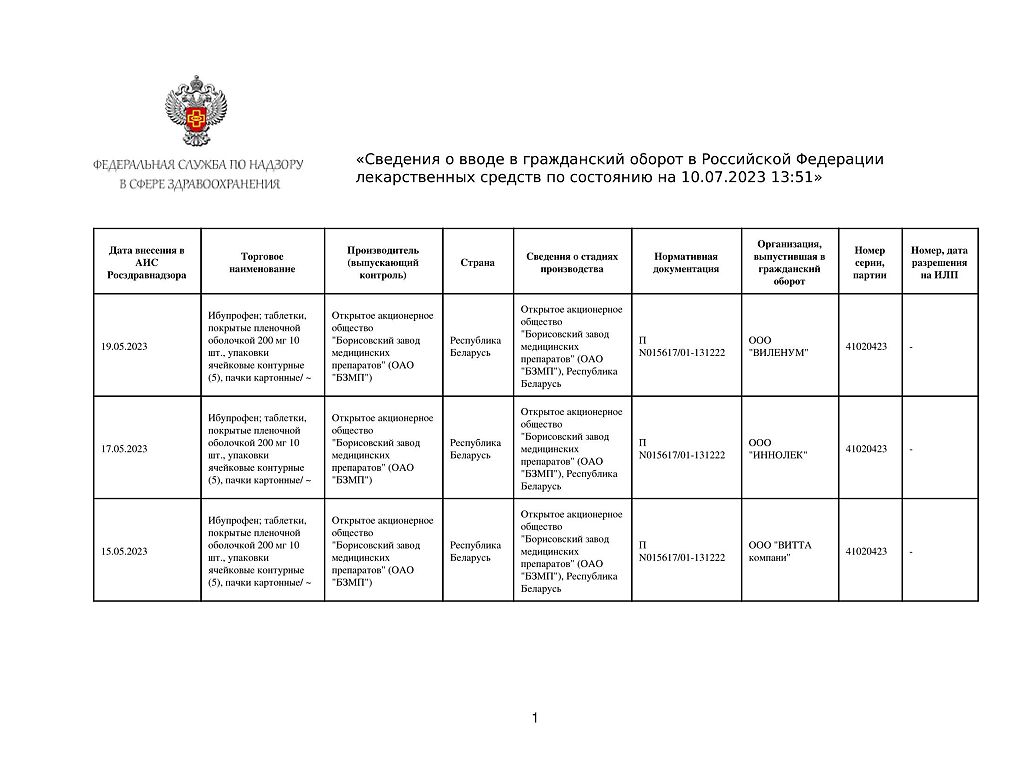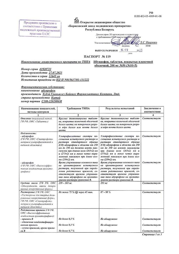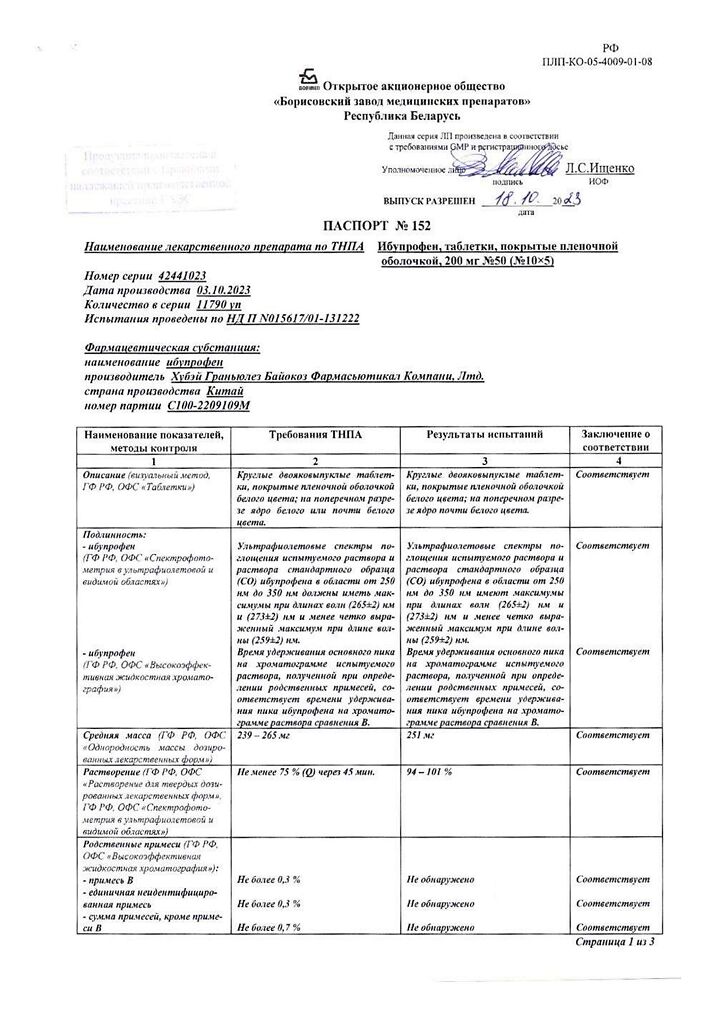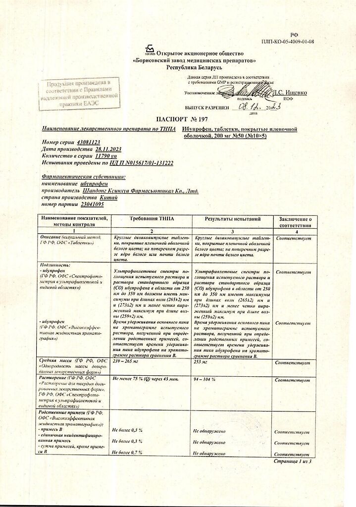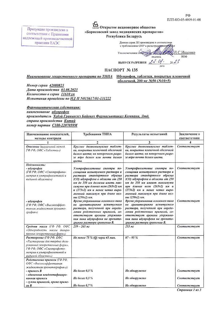 Производитель: Борисовский завод медицинских препаратов, Беларусь