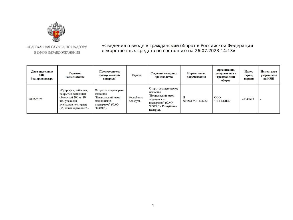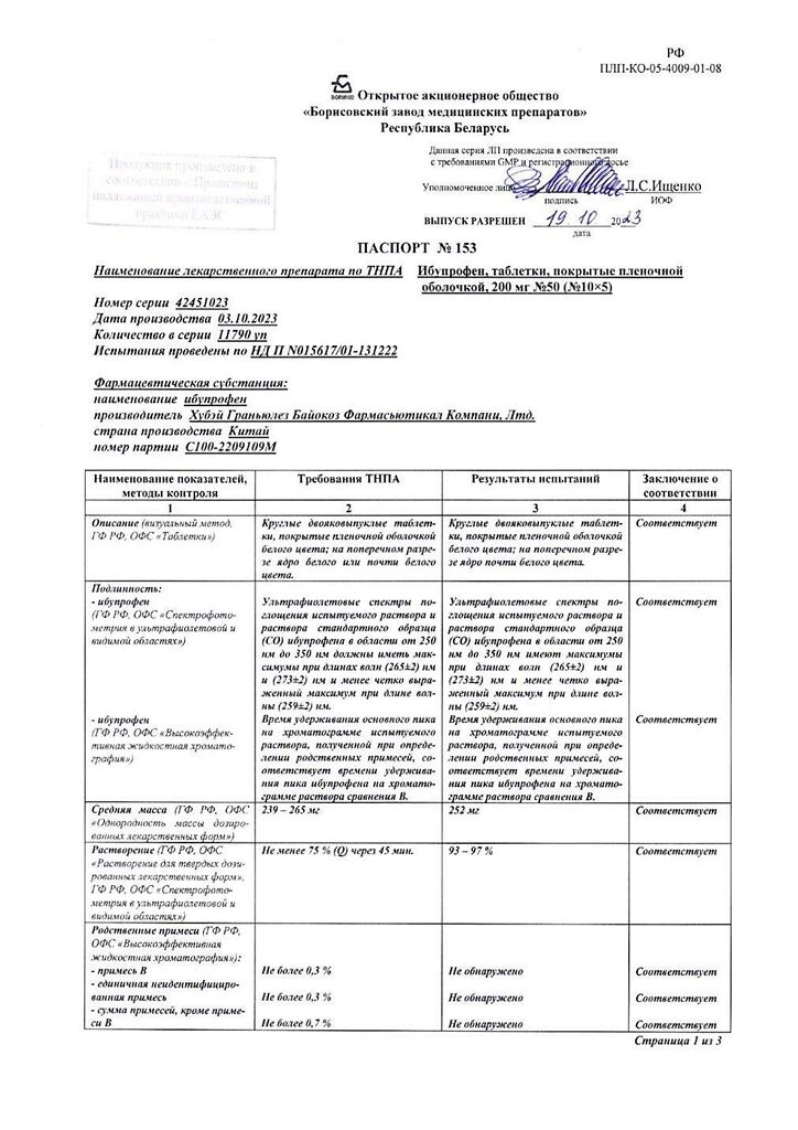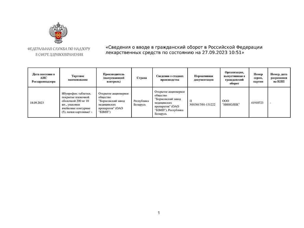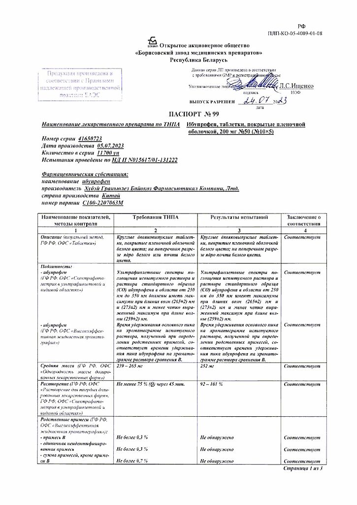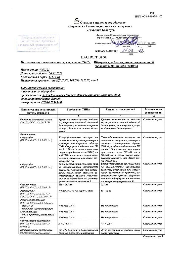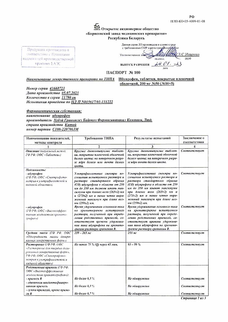 Производитель: Борисовский завод медицинских препаратов, Беларусь