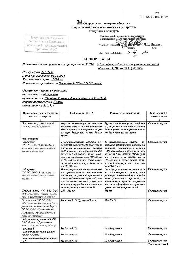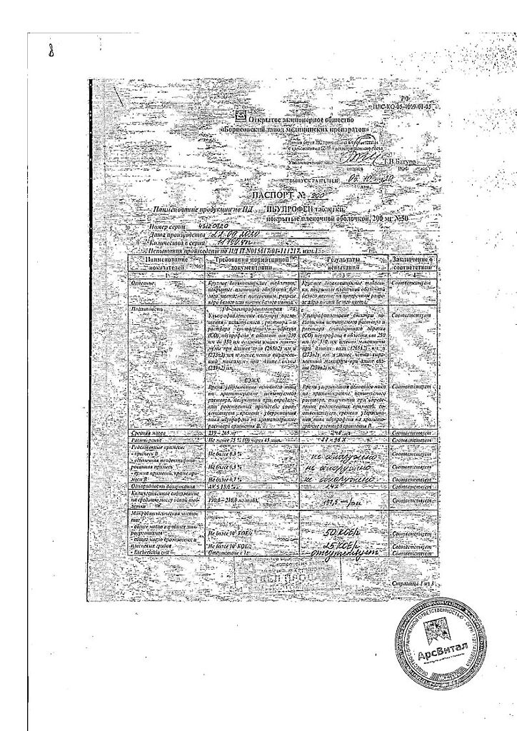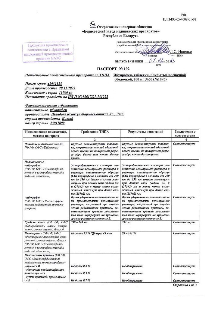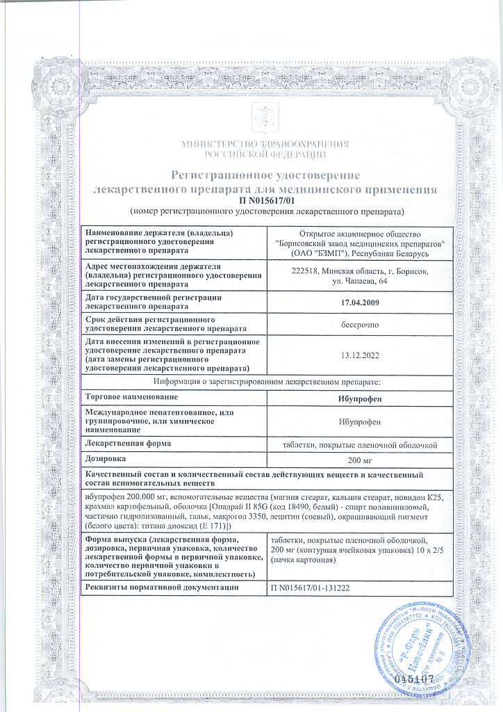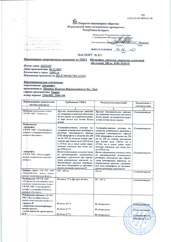 Действующее вещество: Ибупрофен
