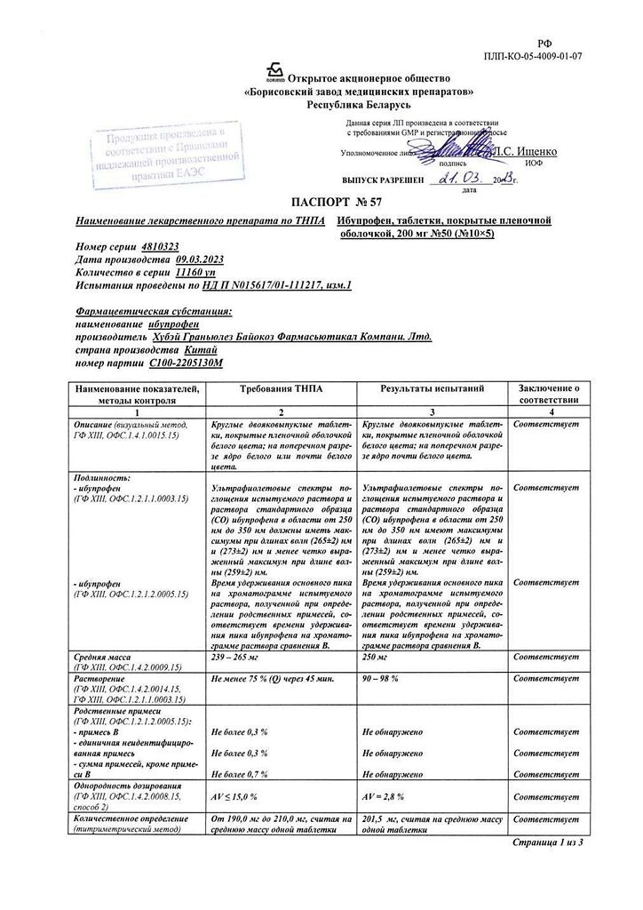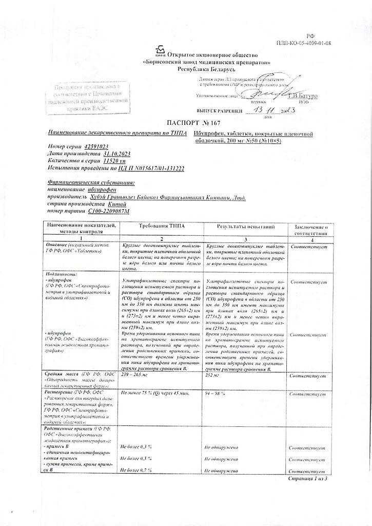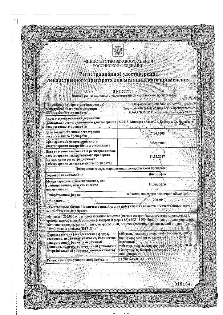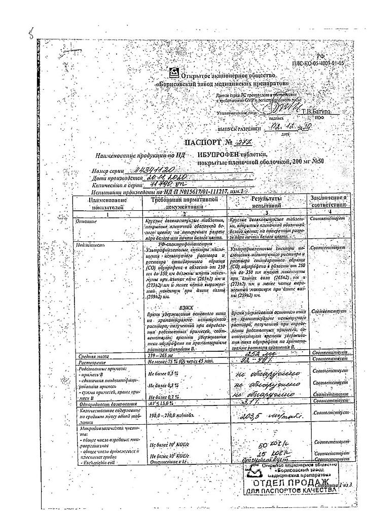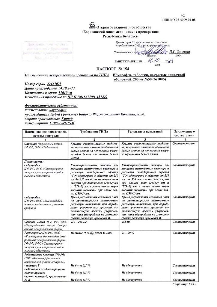 Действующее вещество: Ибупрофен