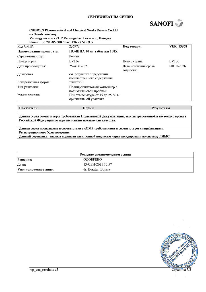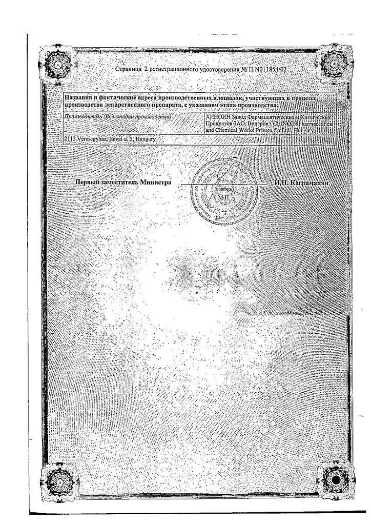 Производитель: Хиноин Завод Фармацевтических и Химических пр-тов, Венгрия