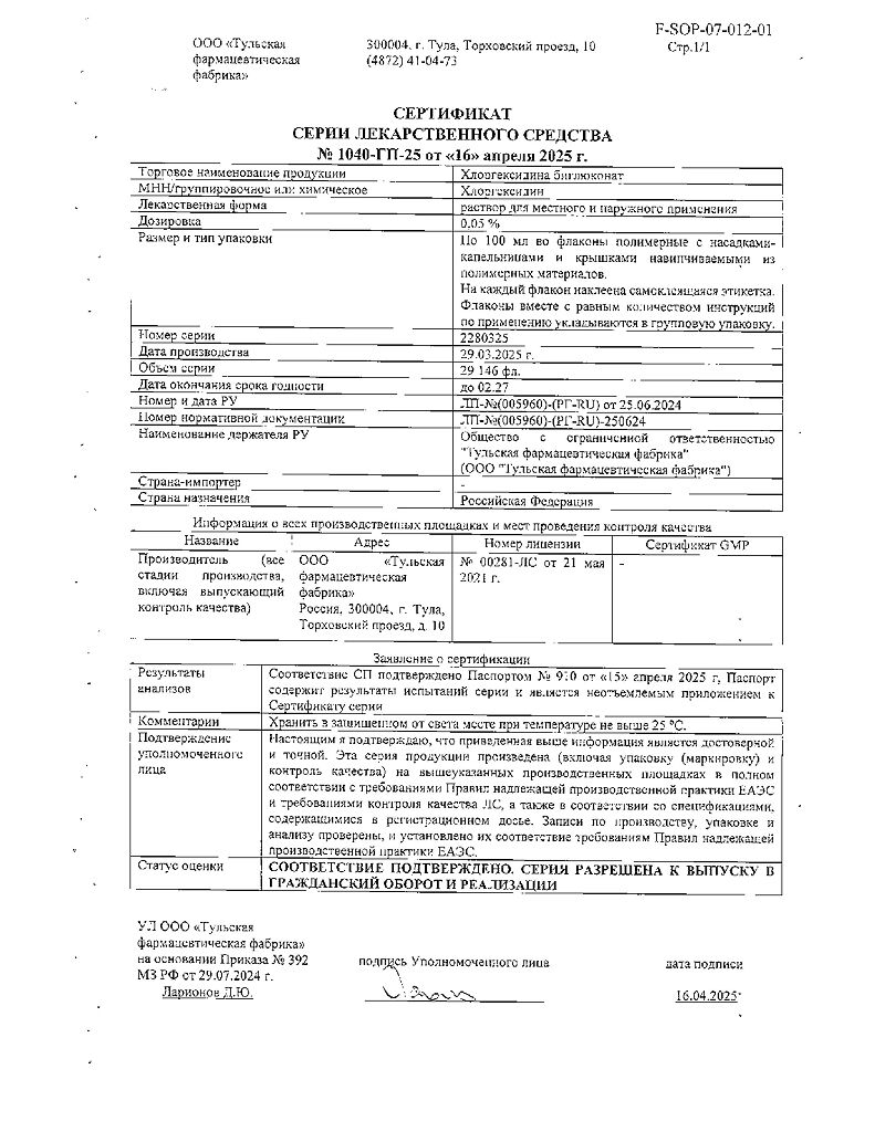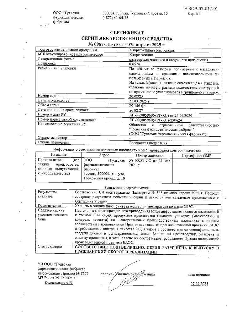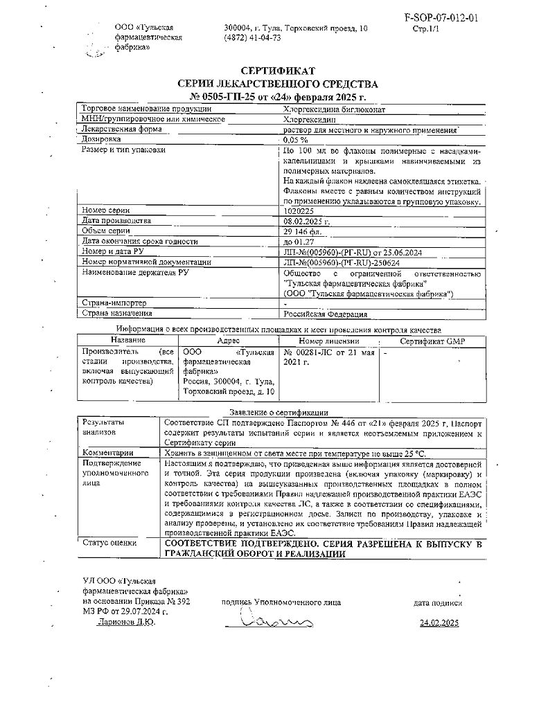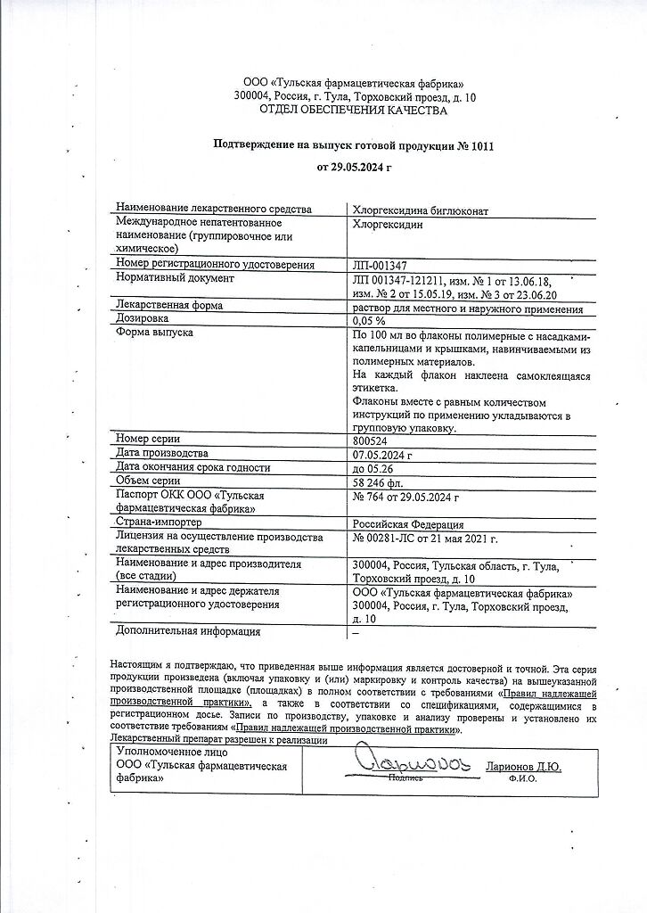 Хлоргексидина биглюконат раствор для местного и наружного применения 0,05 % 100 мл 1 шт: 78 отзывов покупателей и фармацевтов