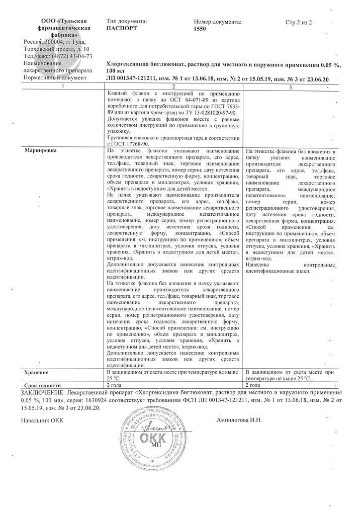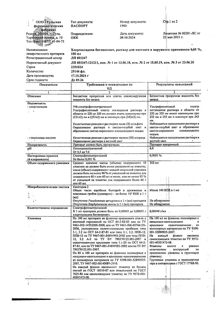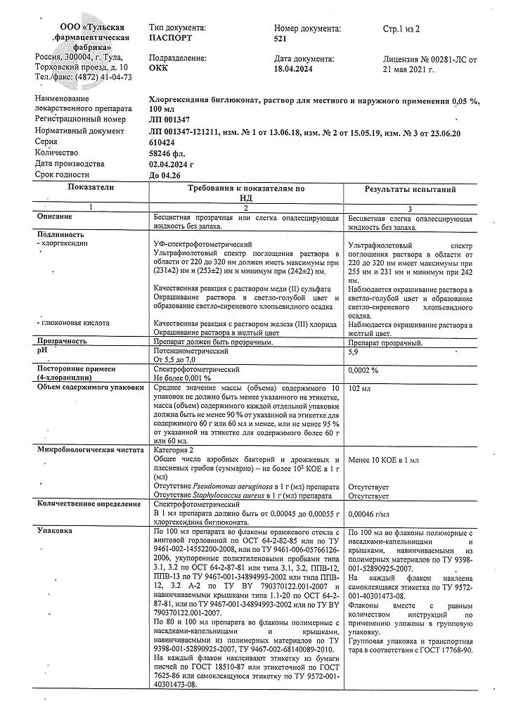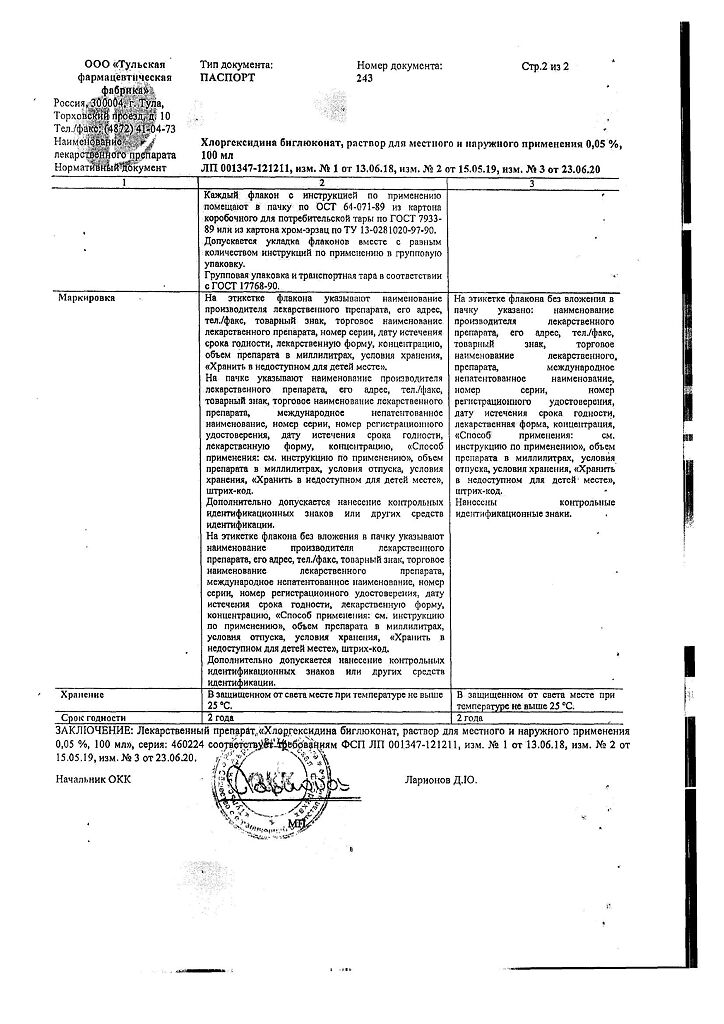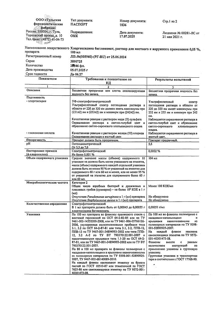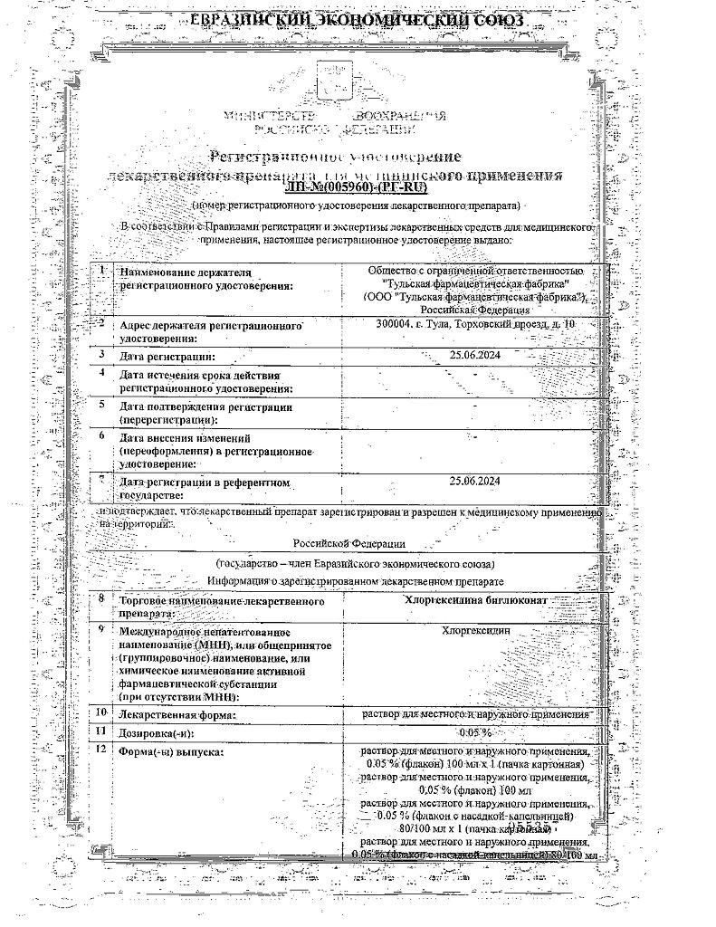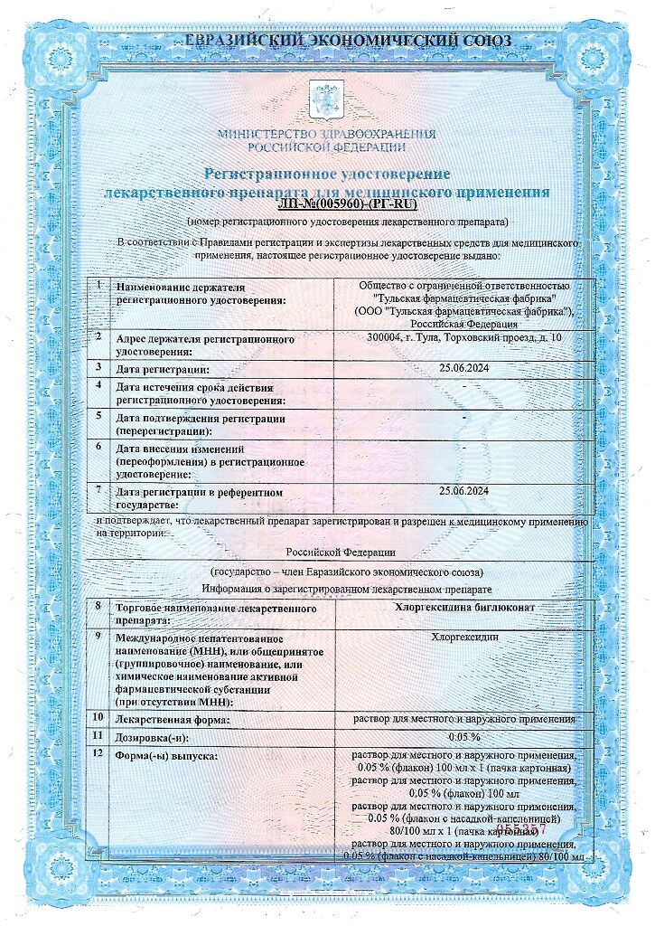 • 📒 Подробная инструкция по применению Хлоргексидина биглюконат раствор для местного и наружного применения 0,05 % 100 мл 1 шт