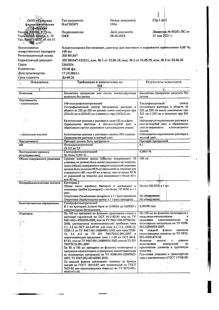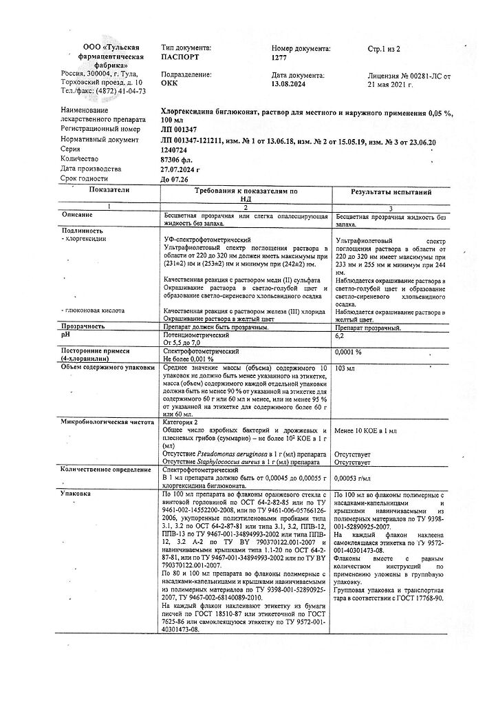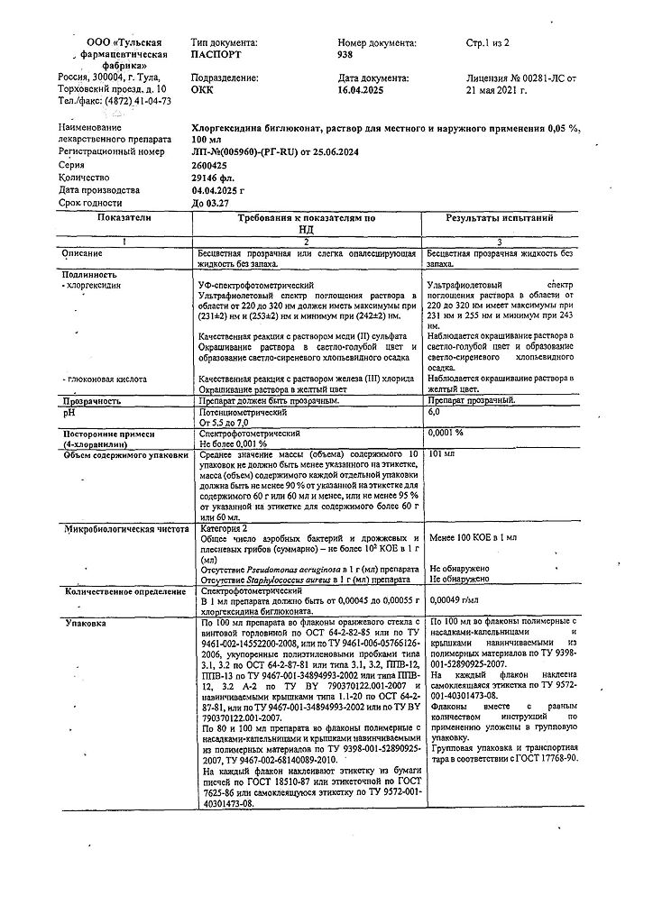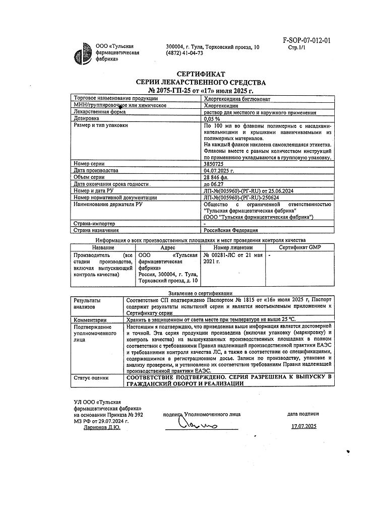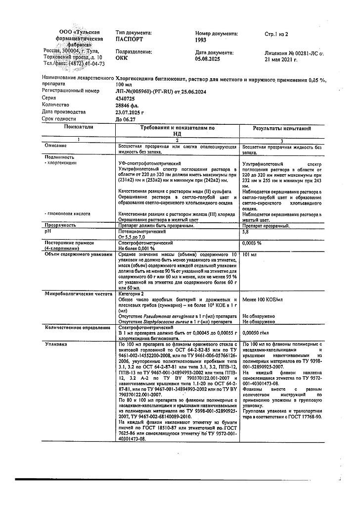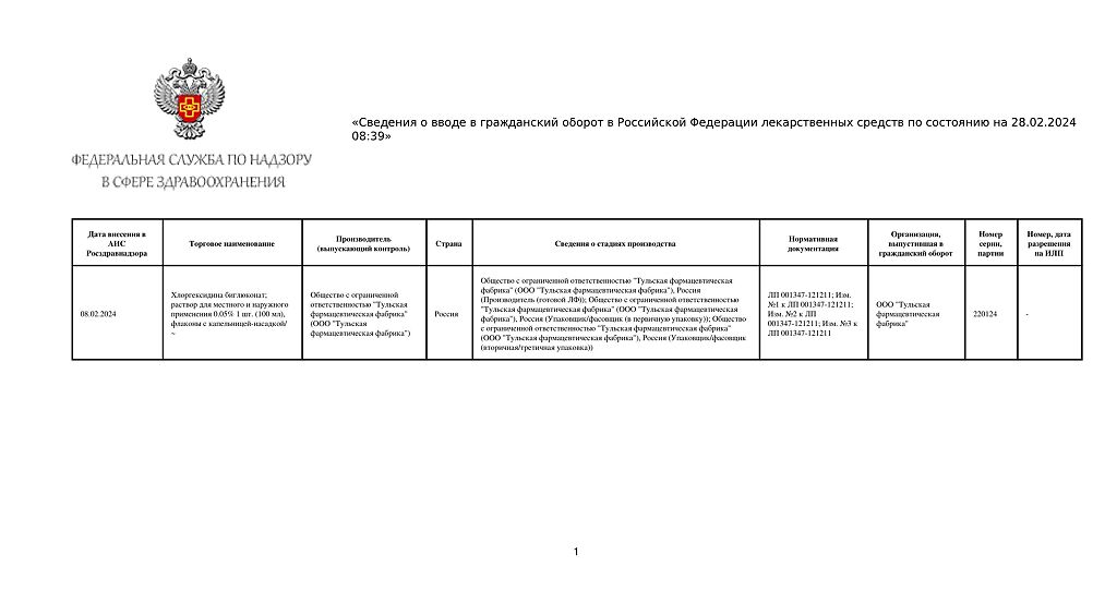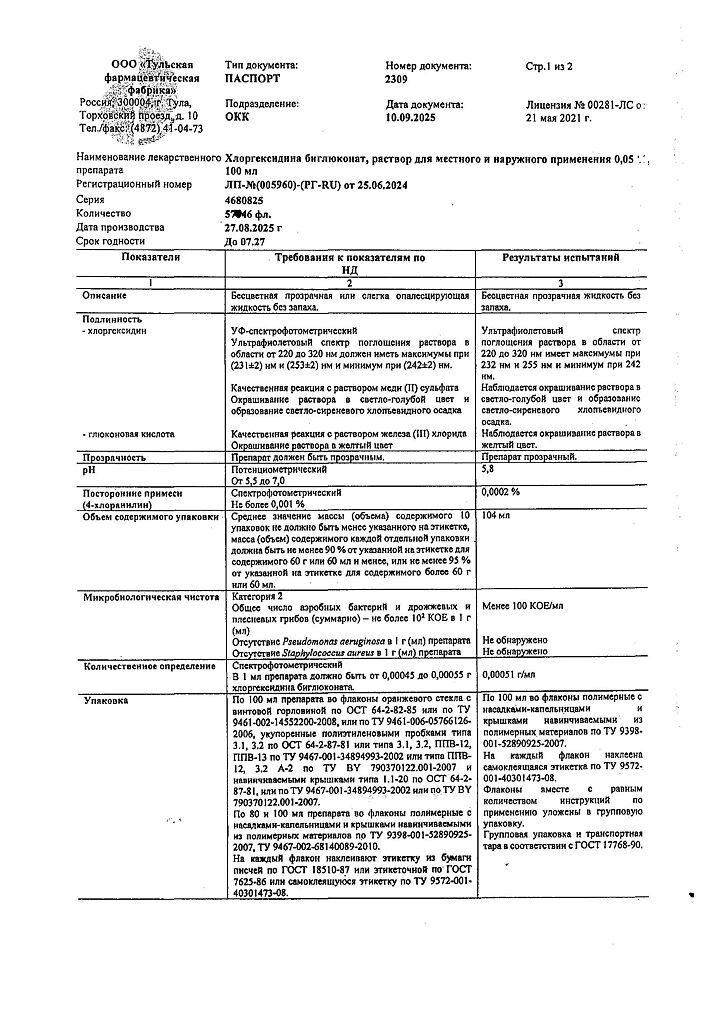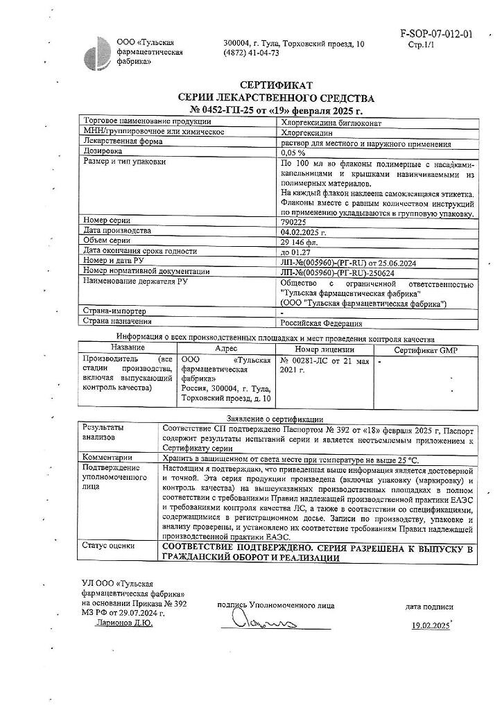 • 📒 Подробная инструкция по применению Хлоргексидина биглюконат раствор для местного и наружного применения 0,05 % 100 мл 1 шт