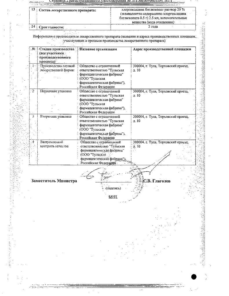 Действующее вещество: Хлоргексидин