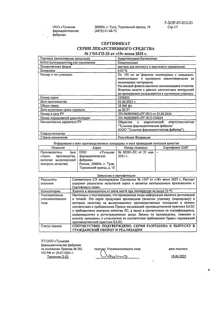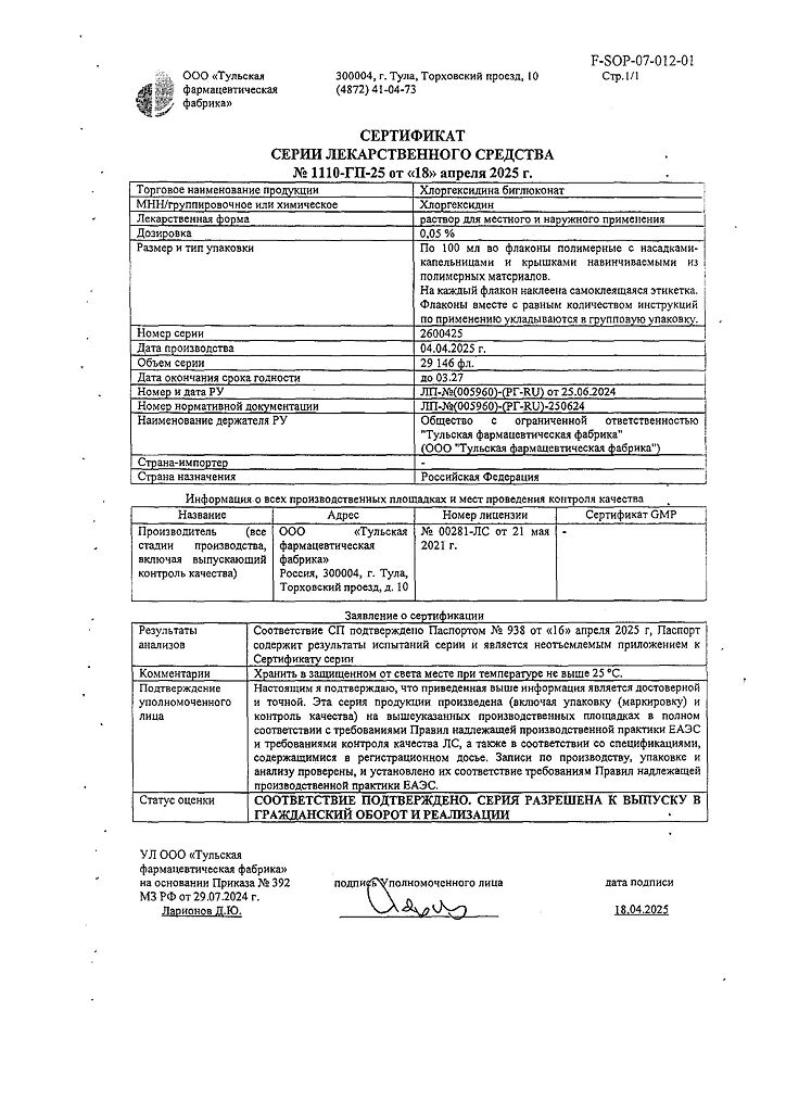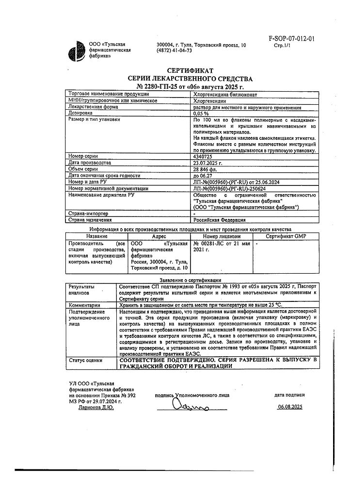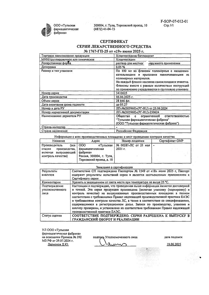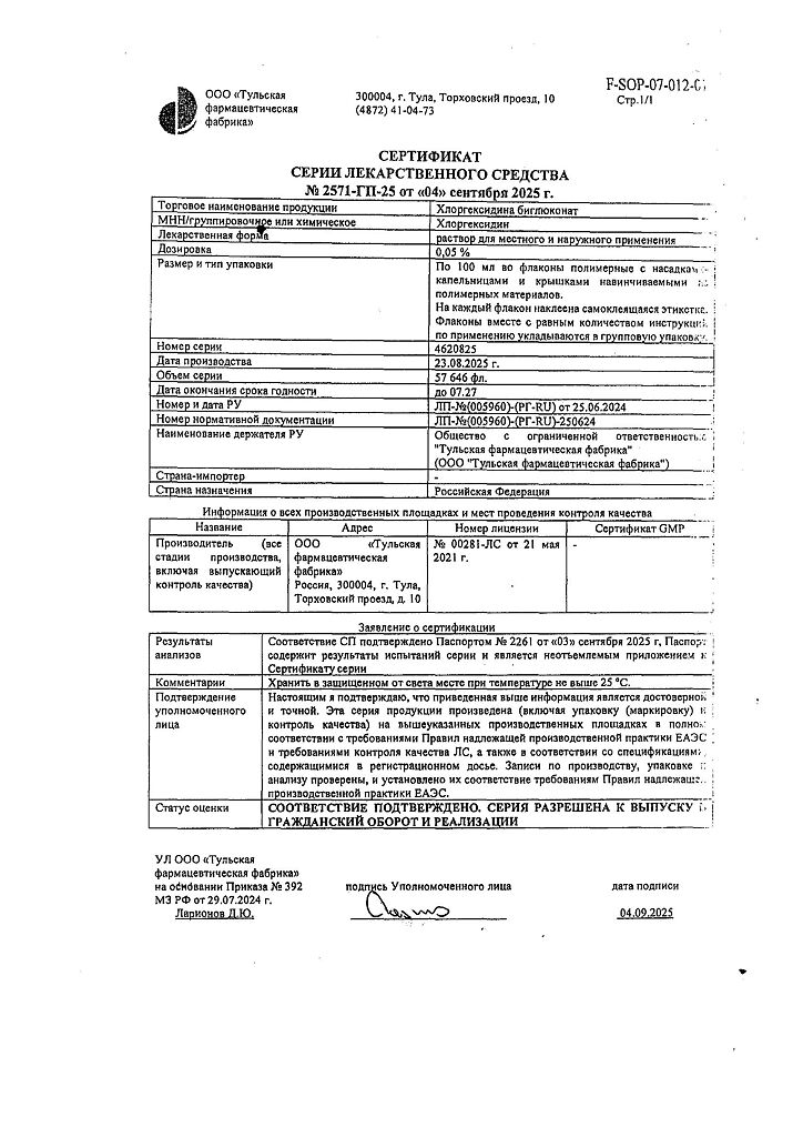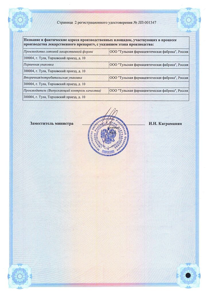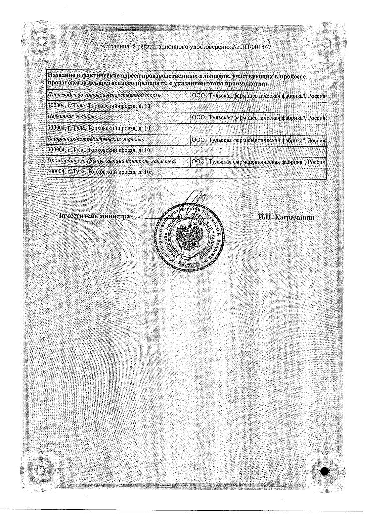 Производитель: Тульская фармфабрика, Россия