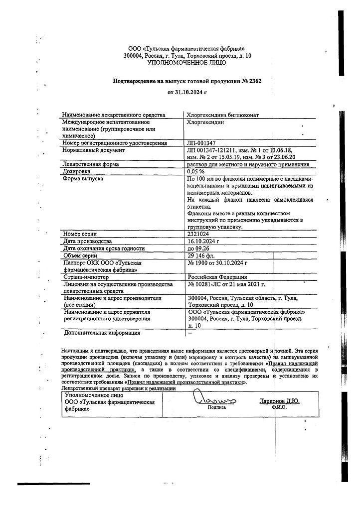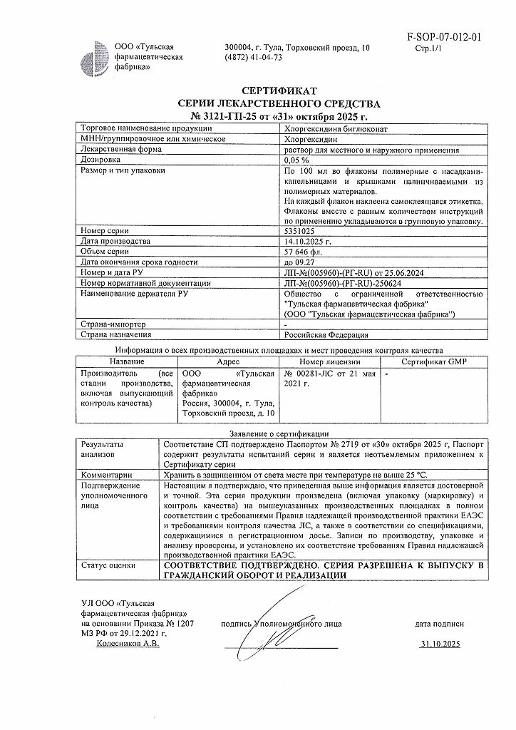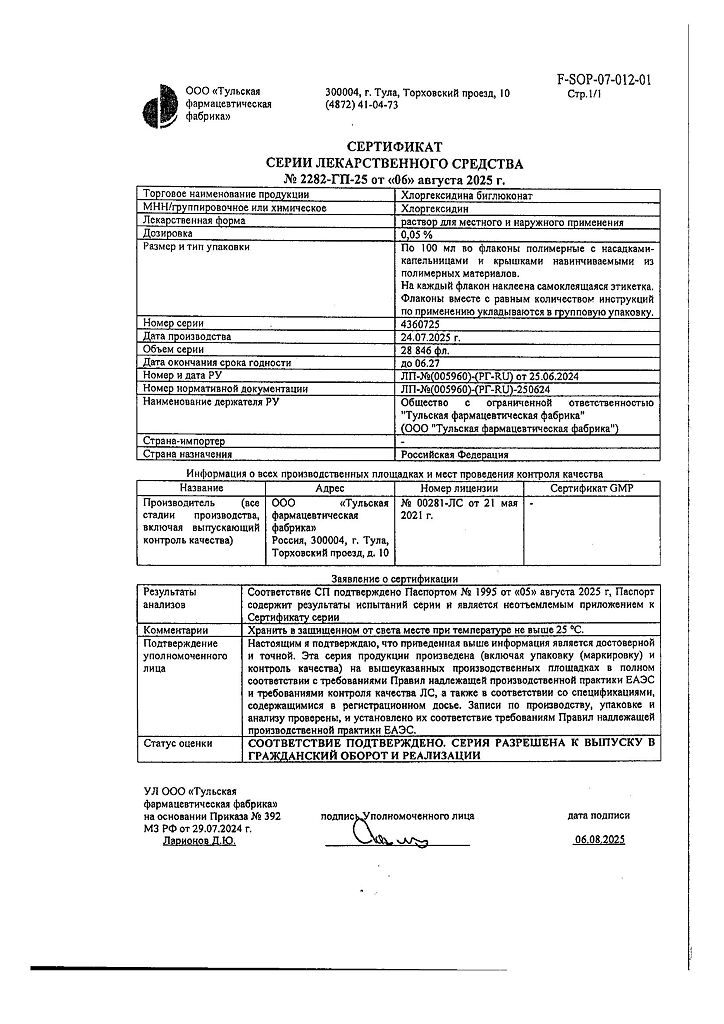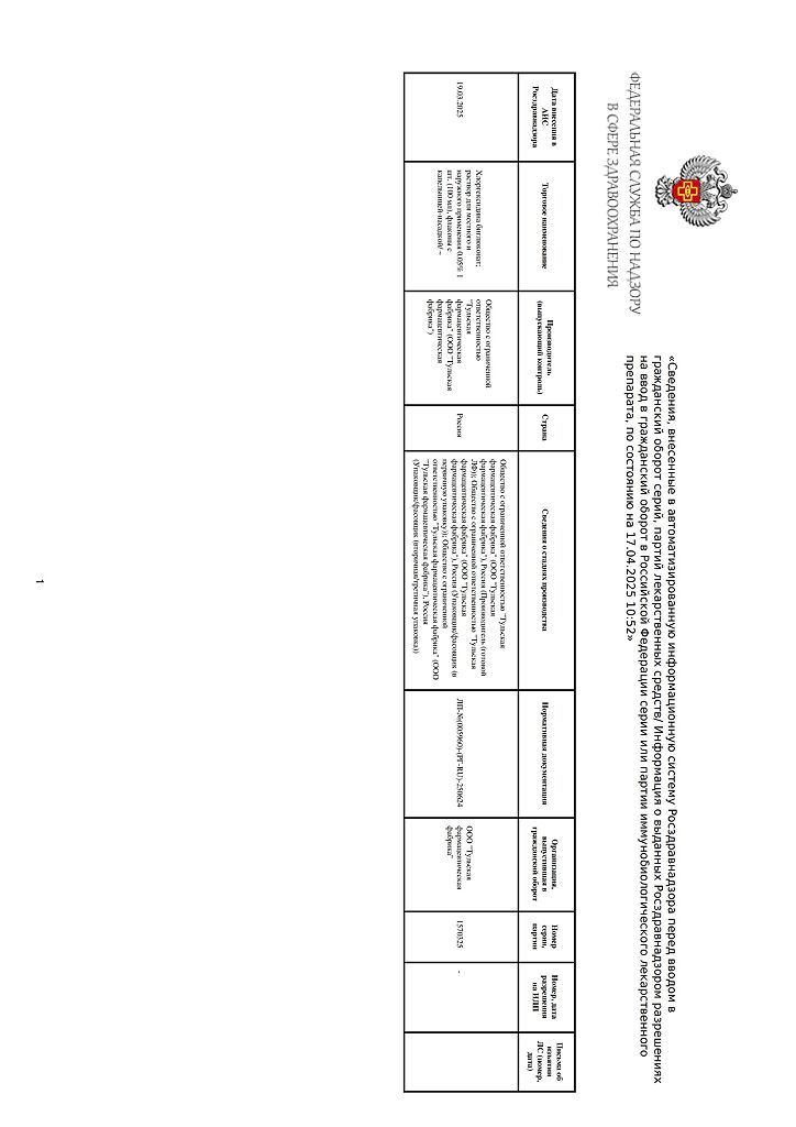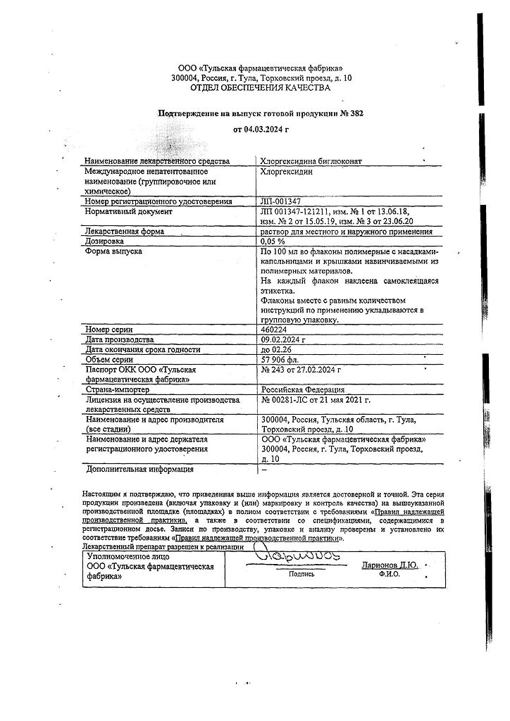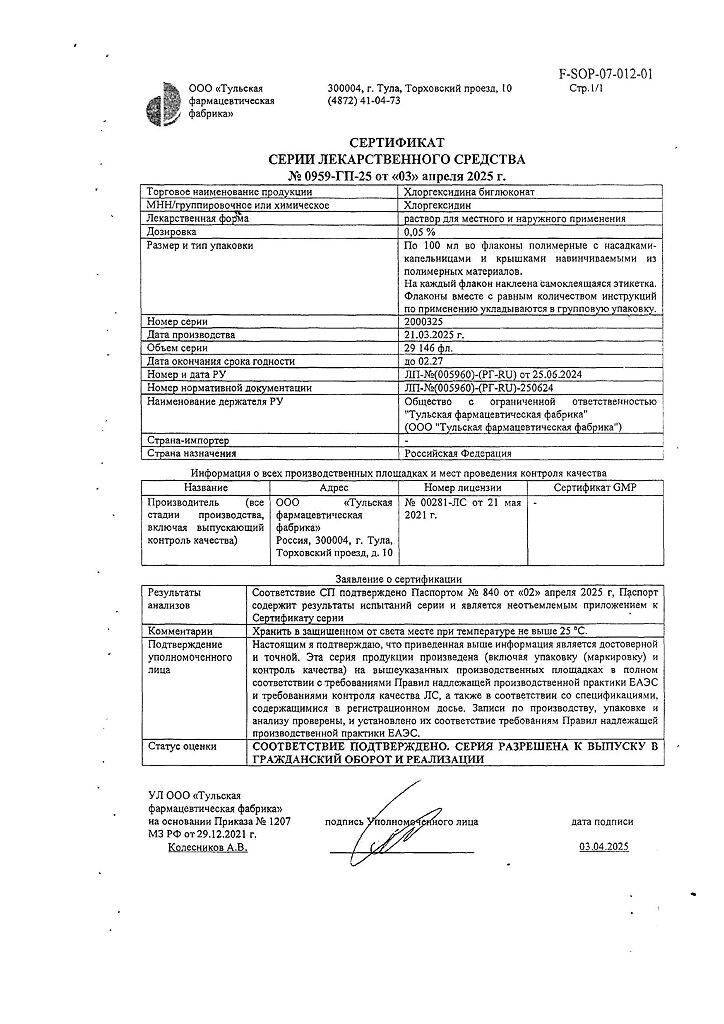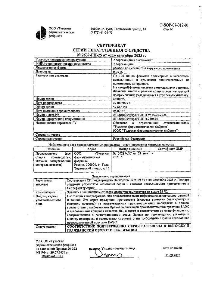 Производитель: Тульская фармфабрика, Россия