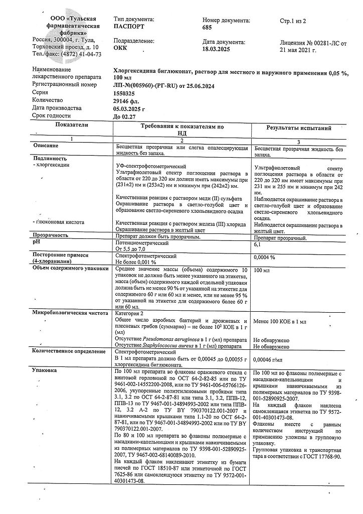 • 🏪 Купить Хлоргексидина биглюконат раствор для местного и наружного применения 0,05 % 100 мл 1 шт можно на сайте и в наших аптеках в Камских Полянах
