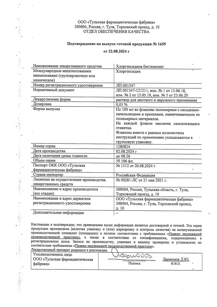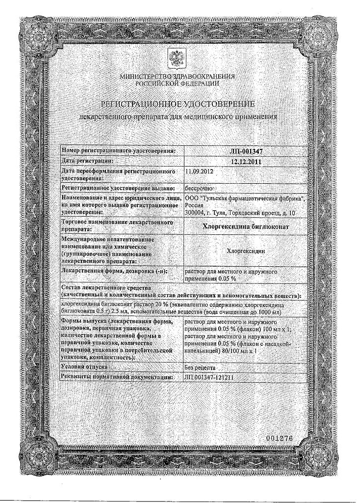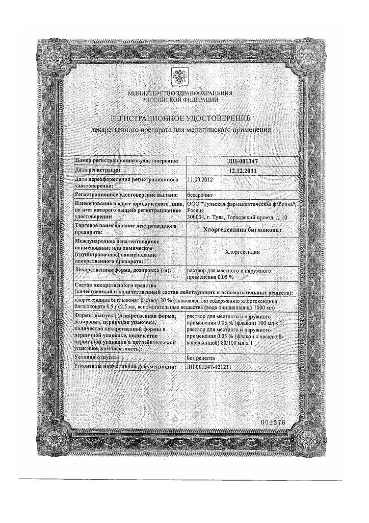 Хлоргексидина биглюконат раствор для местного и наружного применения 0,05 % 100 мл 1 шт