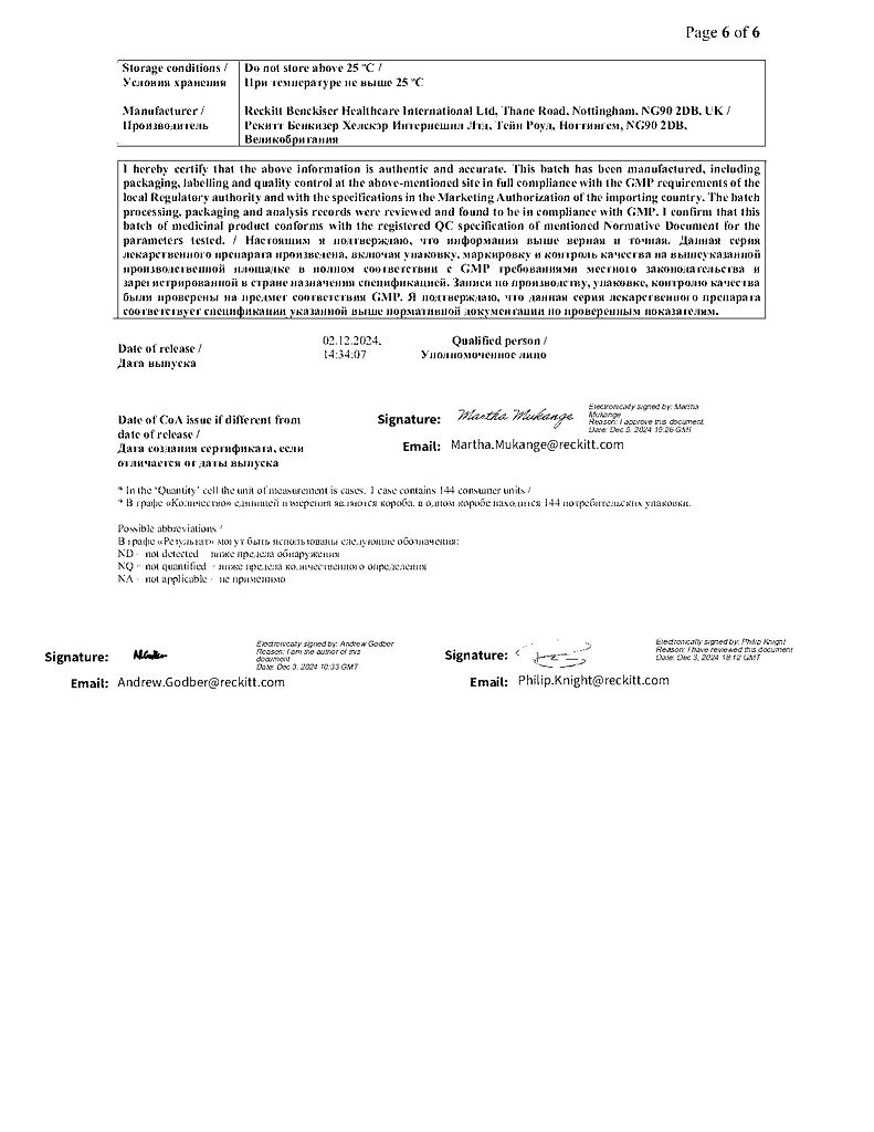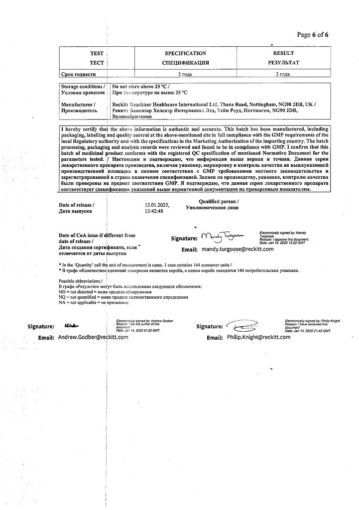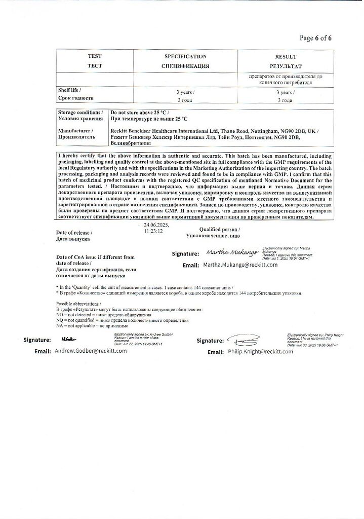 Производитель: Рекитт Бенкизер Хелскэр Интернешнл Лтд, Великобритания