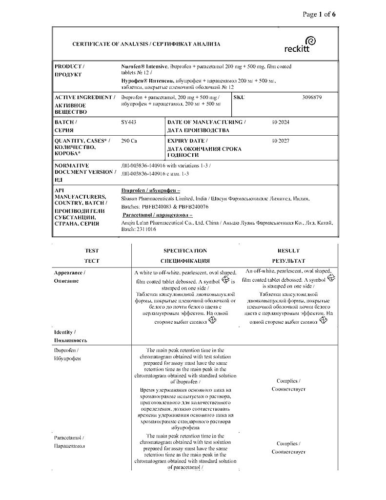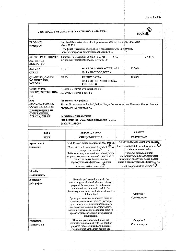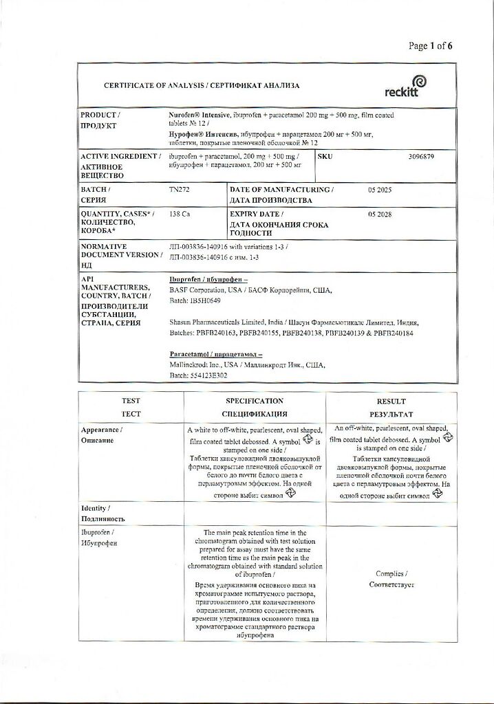 Документы Нурофен Интенсив таблетки покрыт.плен.об. 200 мг+500 мг 12 шт