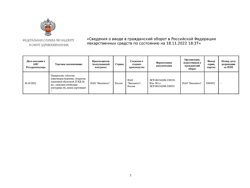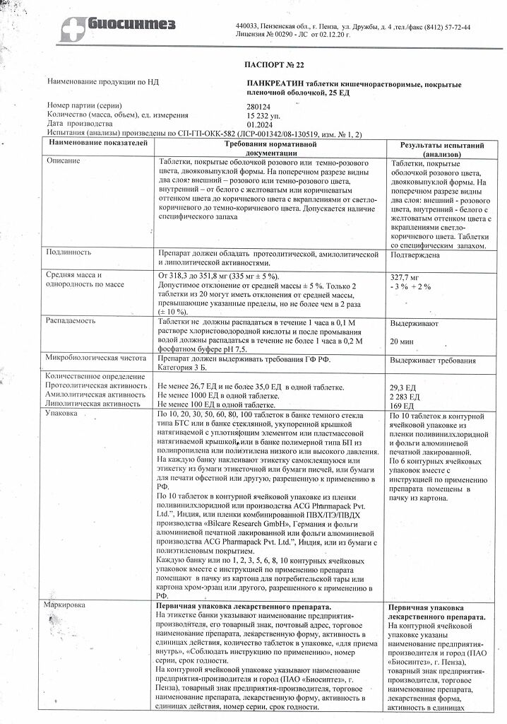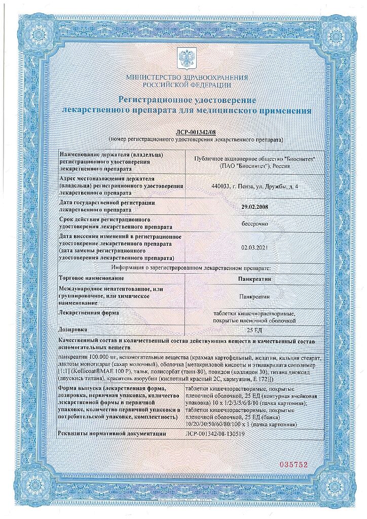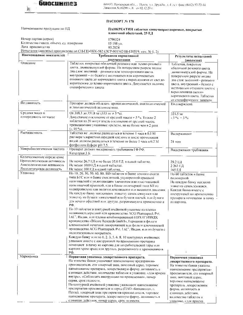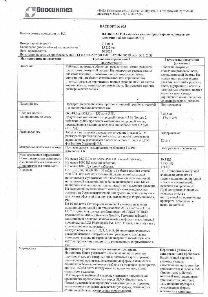 Действующее вещество: Панкреатин