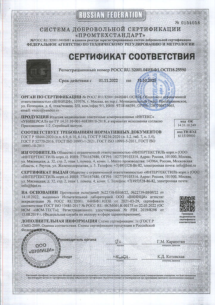 Все варианты Чулки компрессионные Интекс Универсал