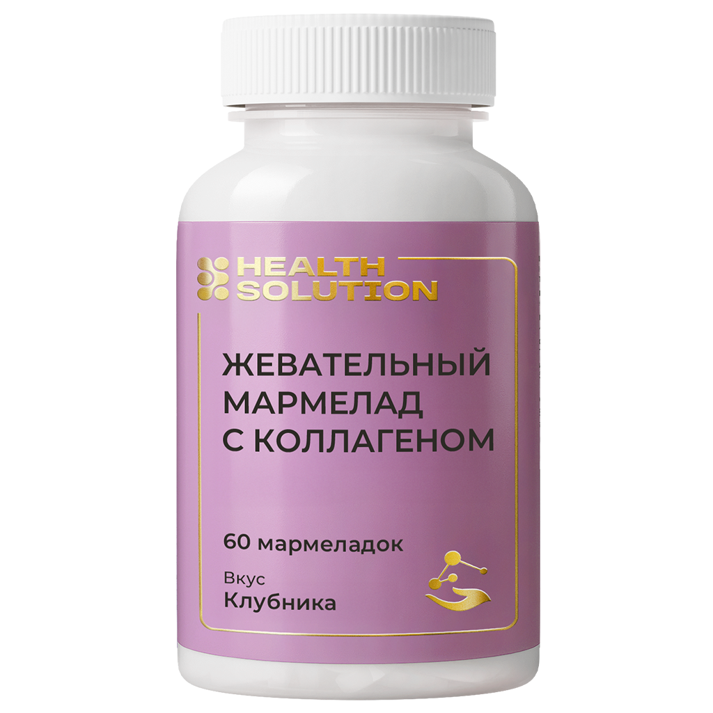Health Solution Жевательный мармелад с коллагеном со вкусом клубники мягкие жевательные мармеладки массой 3000 мг 60 шт: отзывы покупателей и фармацевтов