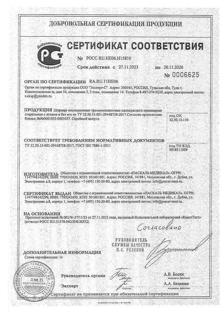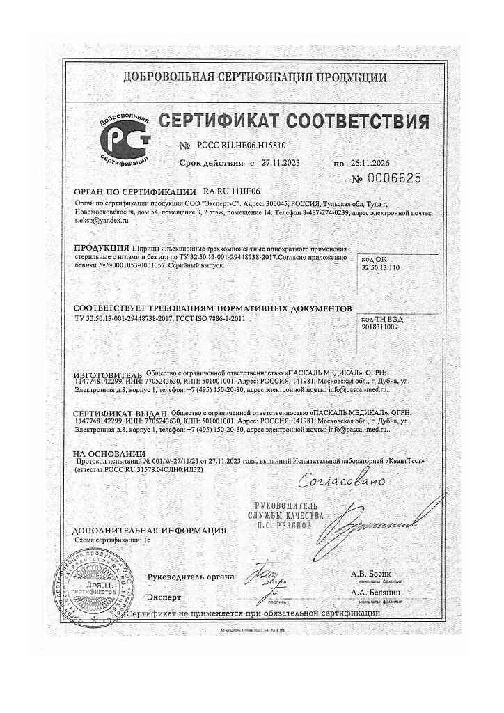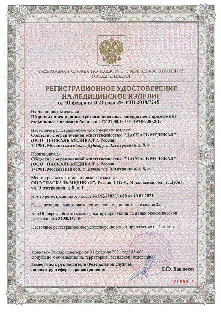 • 📒 Подробная инструкция по применению Шприц 3-х компонентный Pascal 2 мл с иглой 22G (0,7х40 мм) 10 шт