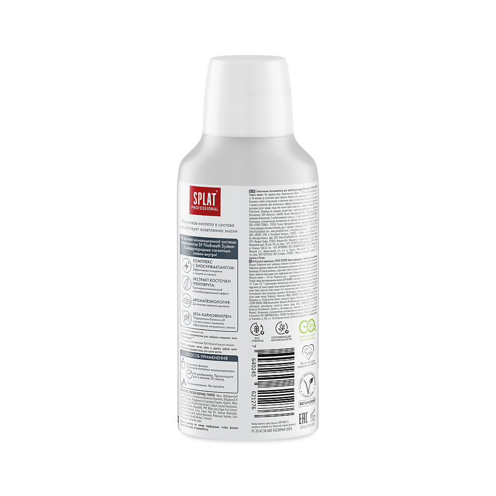 • 📒 Подробная инструкция по применению Splat Professional Ополаскиватель для полости рта Сияние эмали 275 мл 1 шт