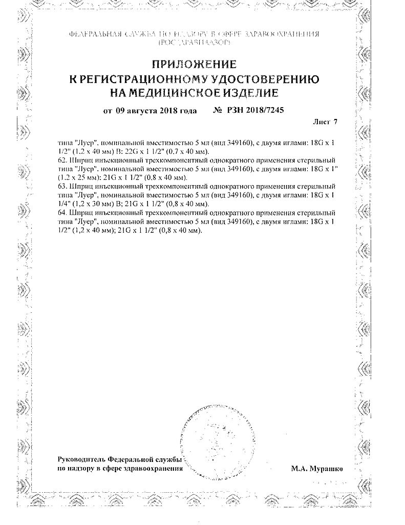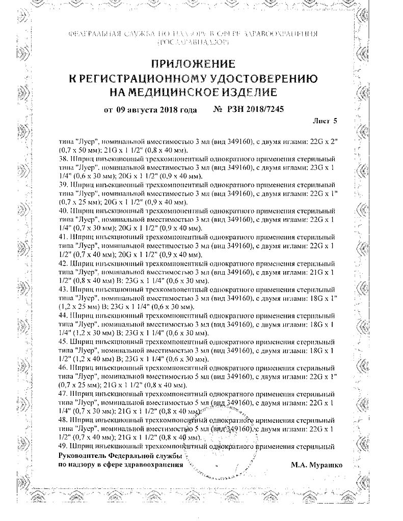 Документы Шприц 3-х компонентный Pascal 5 мл с иглой 22G (0,7х30 мм) 100 шт