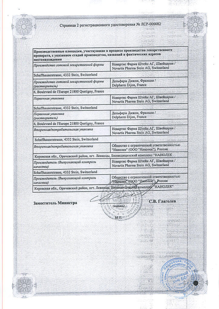 Производитель: Новартис Фарма Штейн АГ, Швейцария