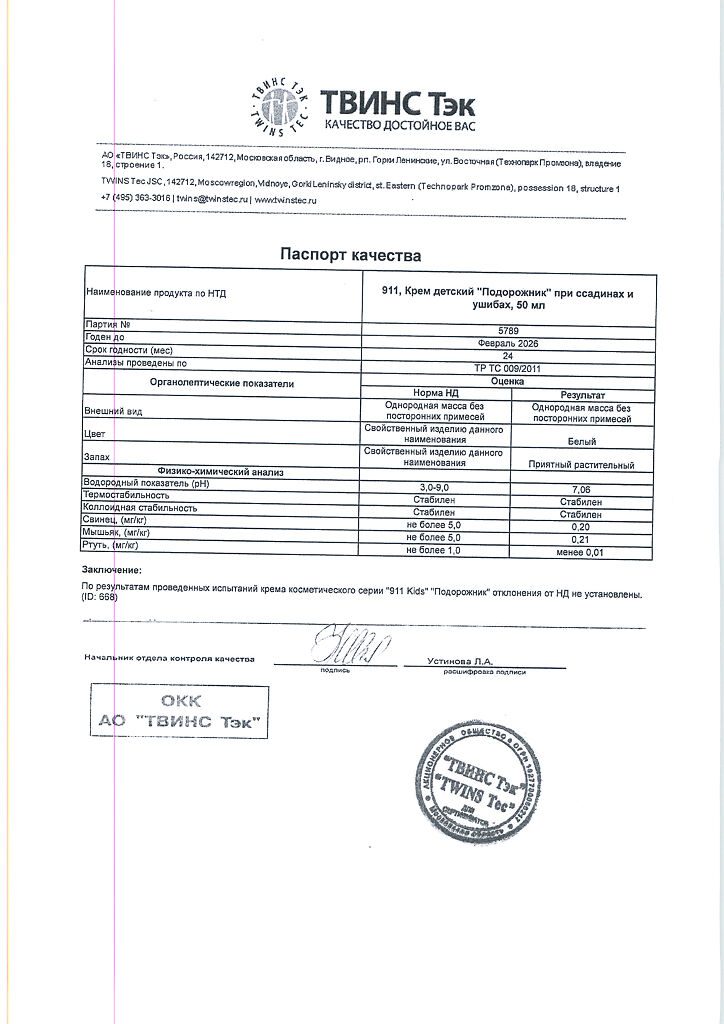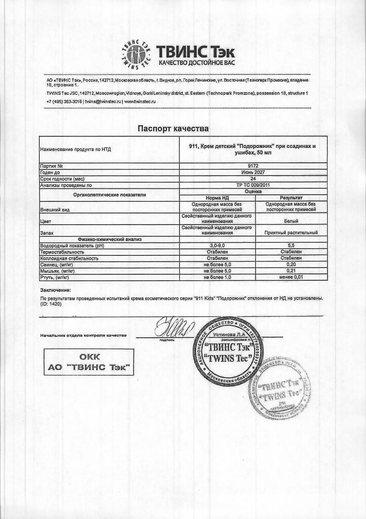 911 Кидс Крем Подорожник при ссадинах и ушибах 50 мл 1 шт