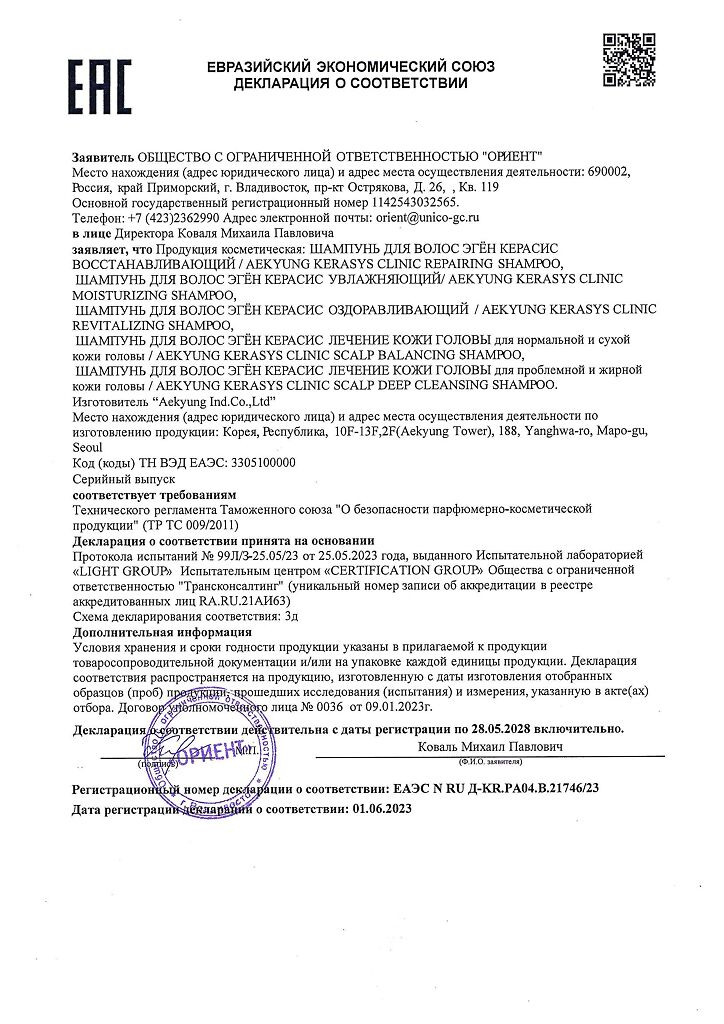 Документы Kerasys Deep Cleansing For Scalp Care Шампунь Лечение кожи головы Освежающий 180 мл 1 шт