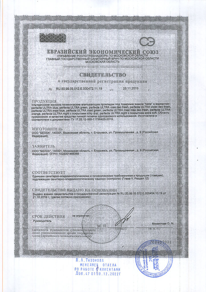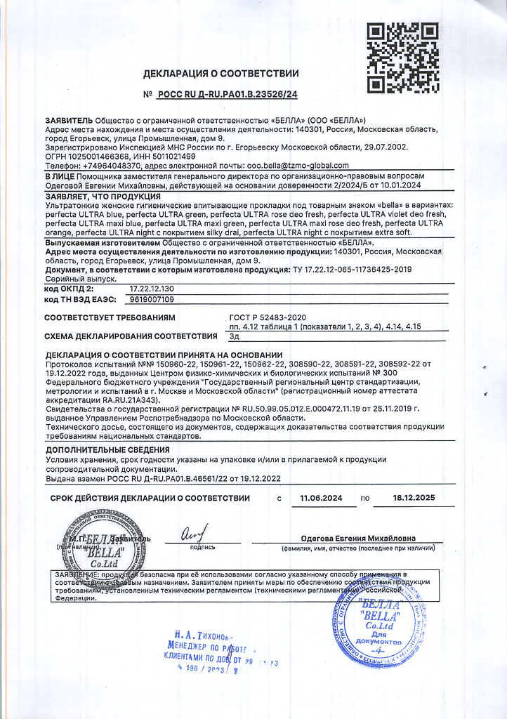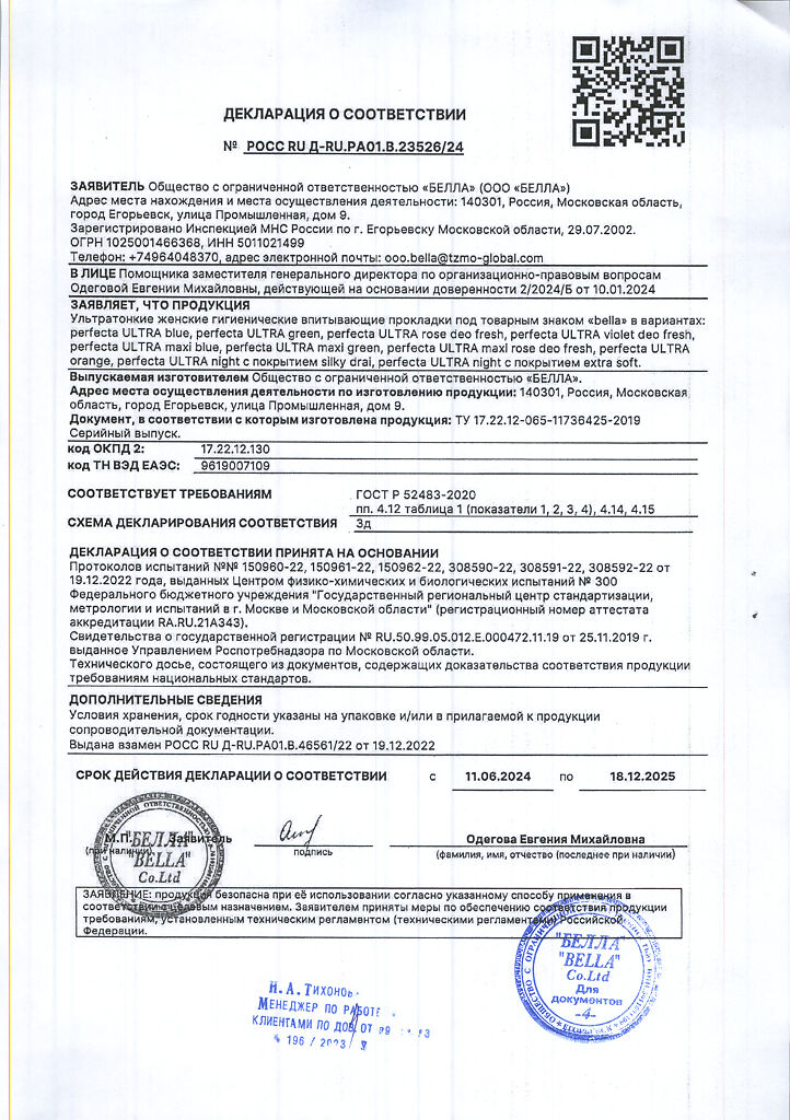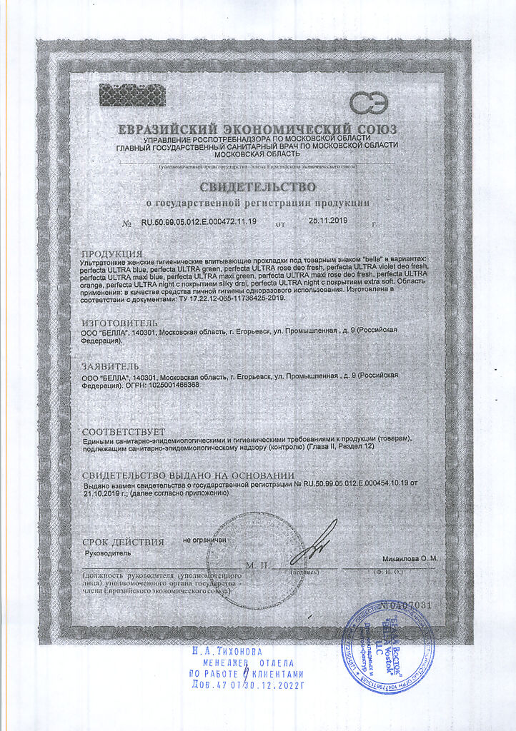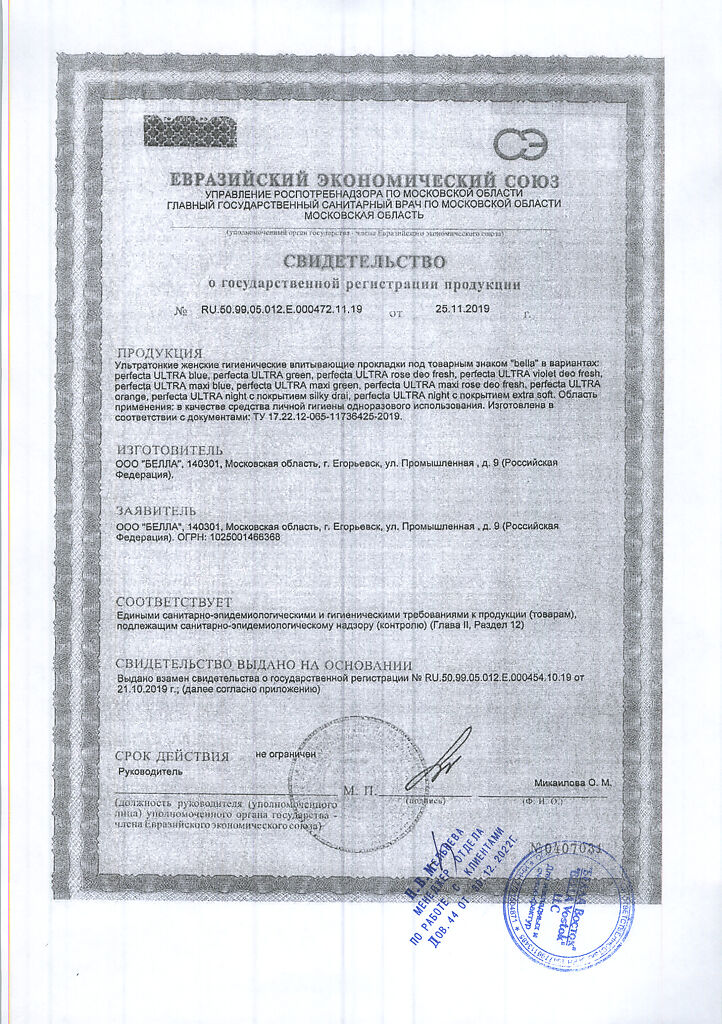 Документы Прокладки Bella Perfecta