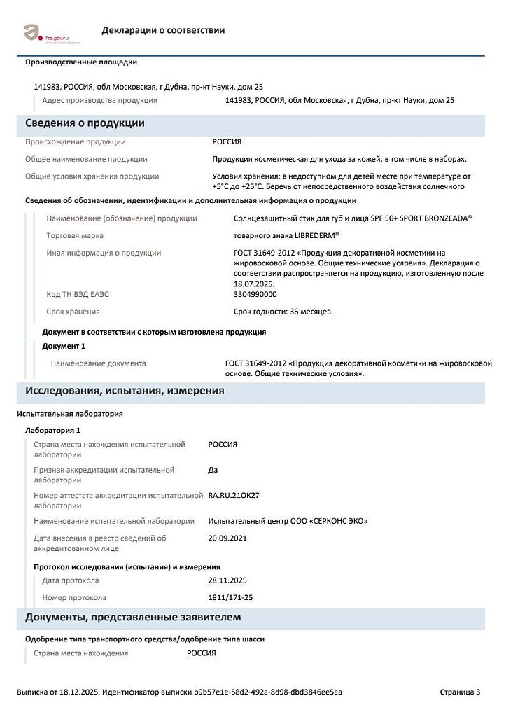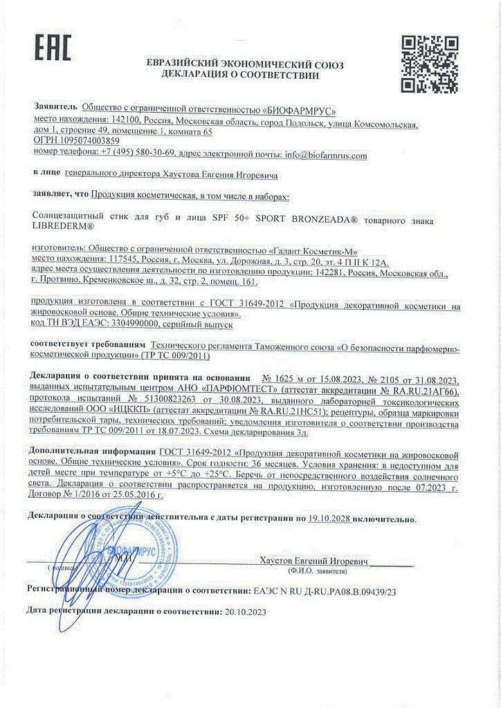 Документы Librederm Bronzeada SPF50